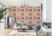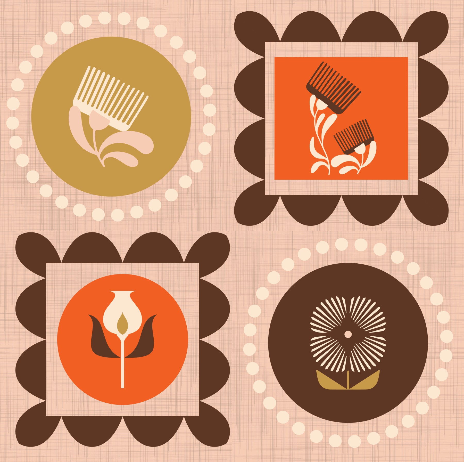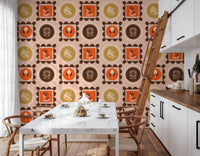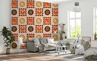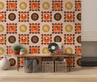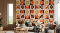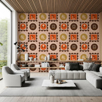 Mid-Mod-Wildblumenrahmen – Botanische Collage, ockerfarbene Terrakotta-Tapete