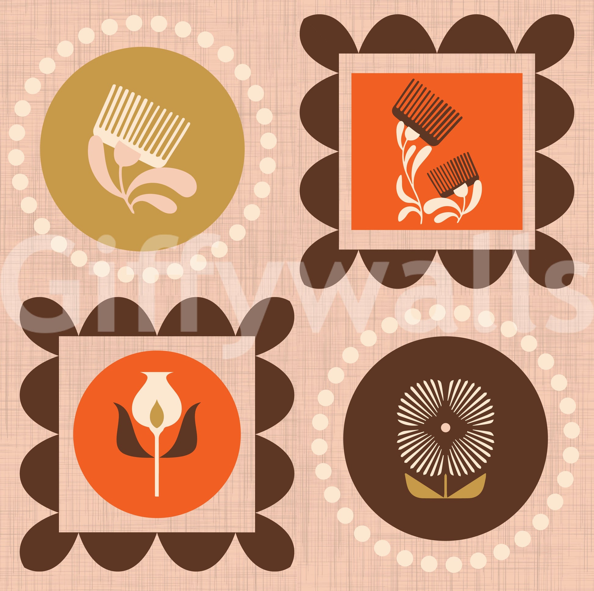 Verwandeln Sie Ihre Räume mit dem Retro-Charme der Bilderrahmen „Mid Mod Wildflower Frames“. Dieses faszinierende Design besticht durch eine sorgfältig in geometrischen Rahmen arrangierte Pflanzencollage, die eine warme und einladende Atmosphäre schafft. Ocker- und Terrakottatöne dominieren und bilden eine satte, erdige Farbpalette, die zu jedem Interieur passt. Stilisierte Wildblumenmotive in vereinfachter, grafischer Form bringen einen Hauch Natur ins Haus, während die Mid-Century-Ästhetik für einen eleganten Touch sorgt. Die ausgewogene Komposition und die harmonische Farbgebung machen die Bilderrahmen zur perfekten Wahl, um in jedem Raum einen Blickfang zu schaffen und Ihren Wänden einen Hauch von Vintage-Eleganz und zeitlosem Stil zu verleihen. Setzen Sie mit diesem besonderen Stück ein Statement in Ihrem Zuhause.