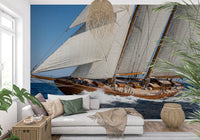 Holen Sie sich die Ruhe des offenen Meeres in Ihr Zuhause mit dieser faszinierenden Wandtapete. Das Design zeigt eine klassische Segelyacht, die durch azurblaues Wasser gleitet, und vermittelt ein Gefühl von Freiheit und Abenteuer. Das Zusammenspiel der warmen Holztöne des Rumpfes mit dem kühlen, klaren Weiß der Segel schafft eine harmonische Optik. Ob Arbeitszimmer, Wohnzimmer oder Schlafzimmer im maritimen Stil – diese Szene verleiht jedem Raum zeitlose Eleganz und eine inspirierende Atmosphäre. Diese Tapete verwandelt jeden Raum in eine Oase der Ruhe.
