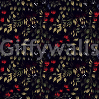 Dive into a nocturnal garden with this wallpaper for walls. Red flowers and varied foliage stand out against a dark backdrop. This design uses a brushstroke style, giving a textured look. Perfect for bedrooms, living rooms, or dining spaces, the pattern brings a touch of dramatic beauty to interiors. The deep colors create a cozy, sophisticated atmosphere.