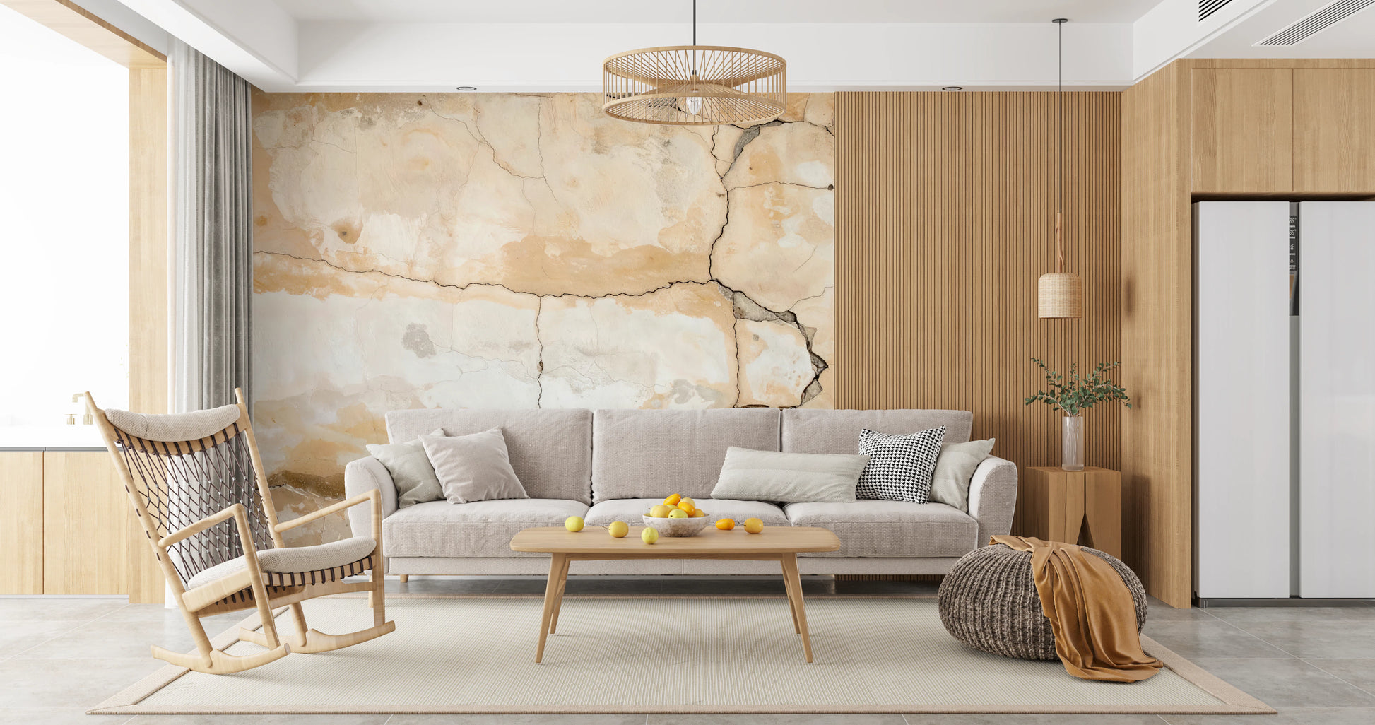 Fangen Sie die Schönheit des Unvollkommenen mit diesem Tapetendesign in Used-Optik ein – die perfekte Wahl für Ihre Wände. Die neutrale Farbpalette aus Creme-, Weiß- und Beigetönen schafft eine elegante und einladende Atmosphäre. Dezente Risse und Strukturen verleihen Charakter und lassen Räume wohnlich und gemütlich wirken. Ideal für Wohnzimmer, Schlafzimmer oder Flure, verleiht sie modernen, minimalistischen oder im Bohème-Stil eingerichteten Interieurs einen Hauch von rustikalem Charme. Dieses Design schafft eine haptische Tiefe und bietet eine optisch anregende Alternative zu schlichten, einfarbigen Wänden.