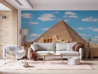 Verwandeln Sie jeden Raum mit dieser faszinierenden Wandtapete, die majestätische Pyramiden vor strahlend blauem Himmel zeigt. Die warmen, erdigen Töne des Steins bilden einen wunderschönen Kontrast zum kühlen Himmel und schaffen ein zeitloses Bild. Dieses Design verleiht Wohnzimmern, Homeoffices oder Arbeitszimmern einen Hauch von Geschichte und Abenteuer. Die detaillierte Textur verleiht jedem Raum Tiefe und lässt ihn einladender und weitläufiger wirken. Lassen Sie sich von dieser Tapete jeden Tag in eine antike Welt entführen.