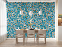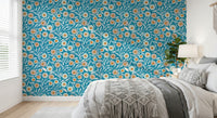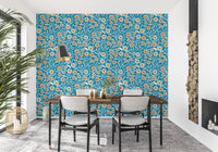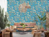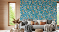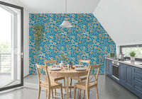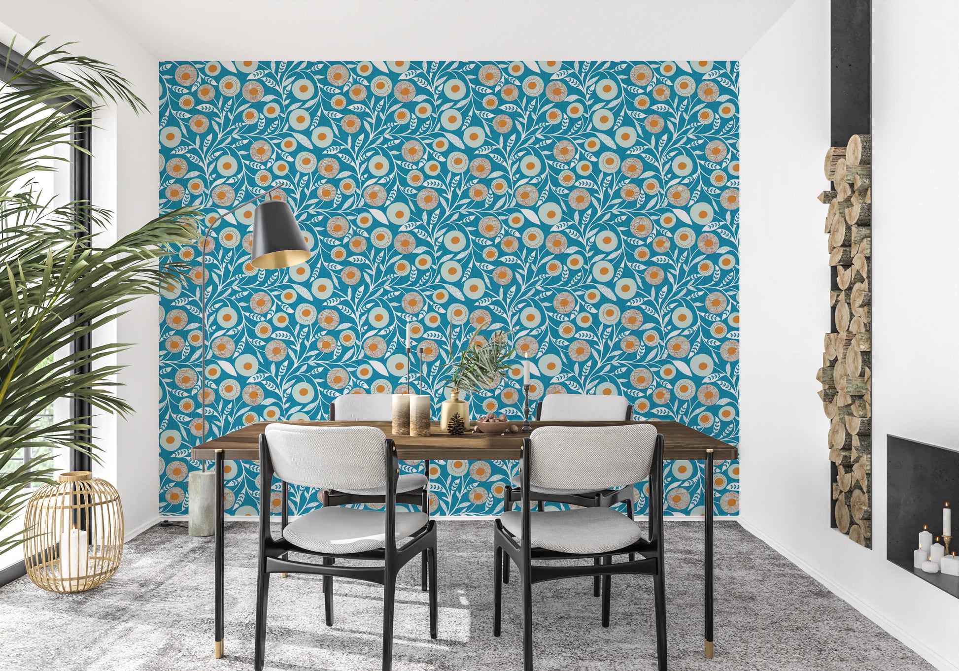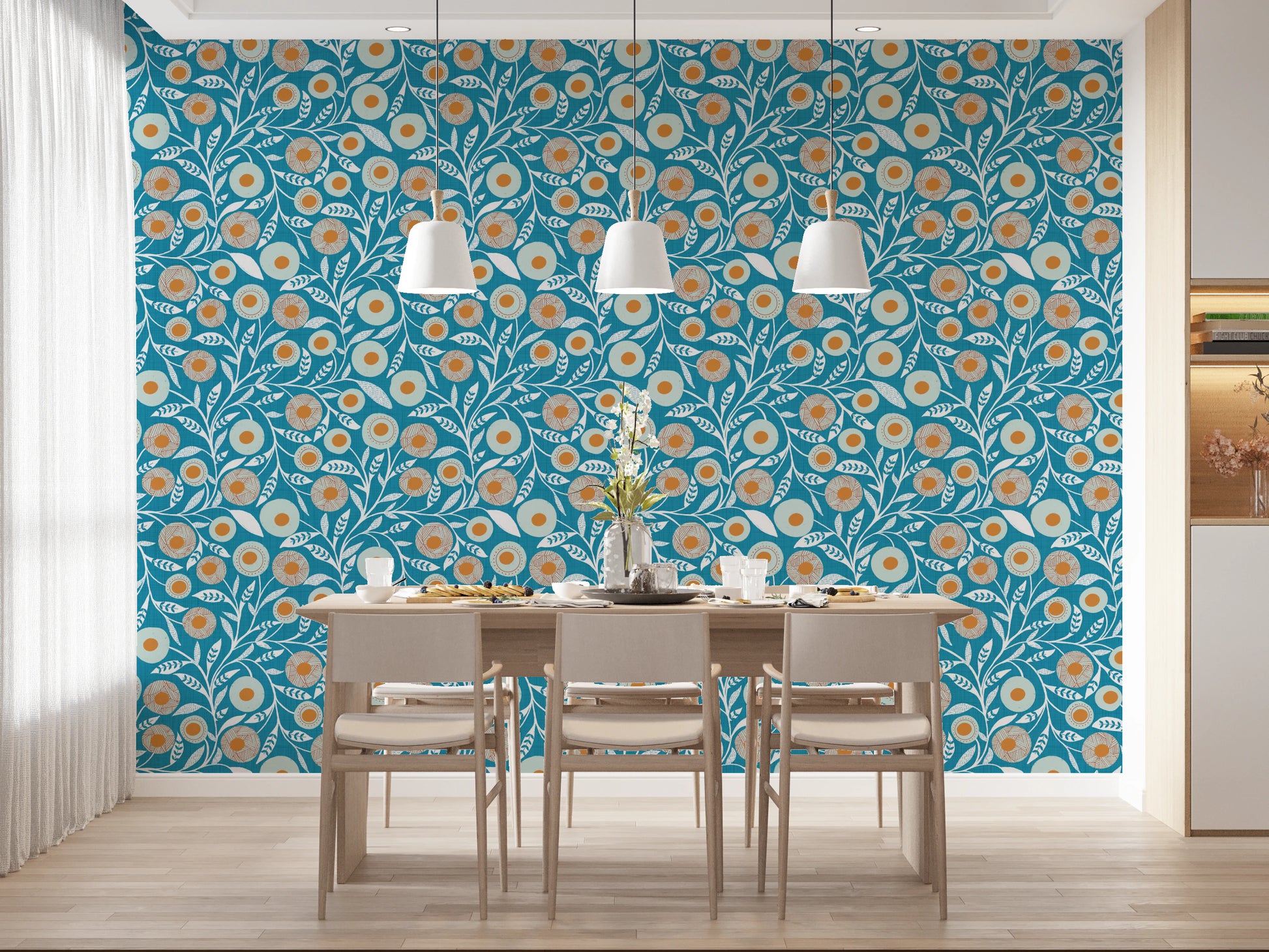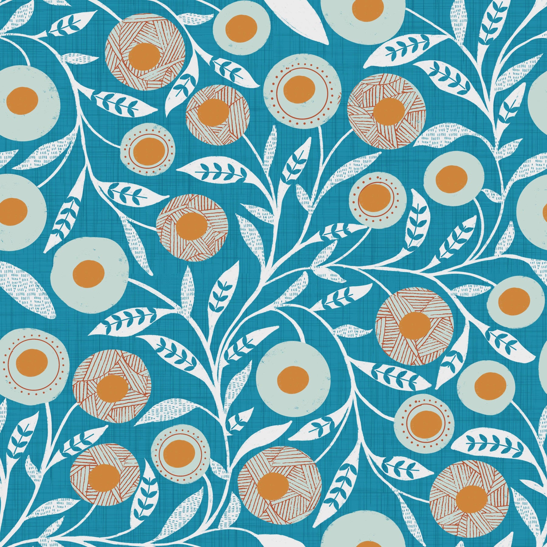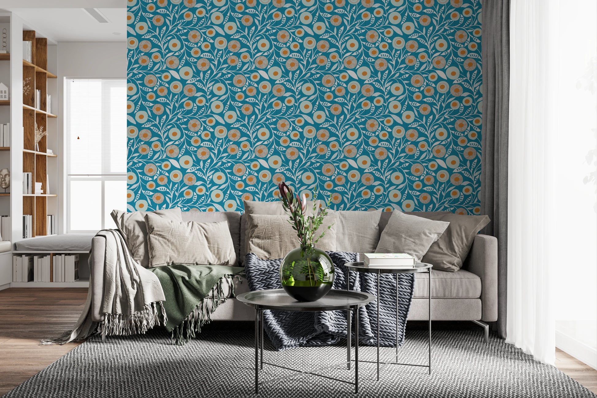 Gemütliche skandinavische Folk-Floral-Nordische Türkis - Handwerkliche botanische Tapete