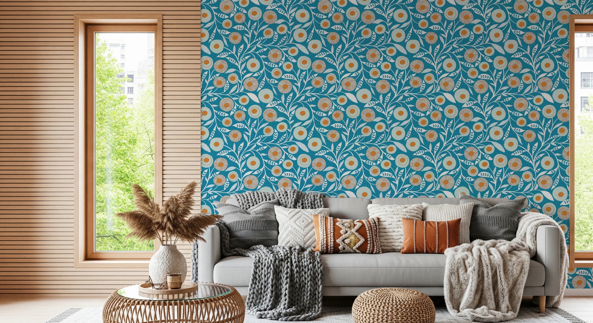 Genießen Sie die Wärme skandinavischen Designs mit dieser bezaubernden Wandbekleidung. „Cozy Scandi Folk Floral“ vereint die Schlichtheit nordischer Ästhetik mit dem Charme traditioneller Volkskunst. Das Design besticht durch stilisierte Pflanzenmotive, bei denen zarte weiße Blätter und kunstvolle Blütenformen eine verspielte und zugleich elegante Atmosphäre schaffen. Die dezente Textur im Hintergrund erinnert an handgefertigte Textilien. Die Farbpalette, dominiert von einem beruhigenden Türkis und akzentuiert mit sanften Erdtönen, vermittelt ein Gefühl von Frieden und Ruhe. Verwandeln Sie jeden Raum in eine gemütliche Oase, die Ihre Liebe zur Natur, zum Handwerk und zu zeitlosem Design widerspiegelt.