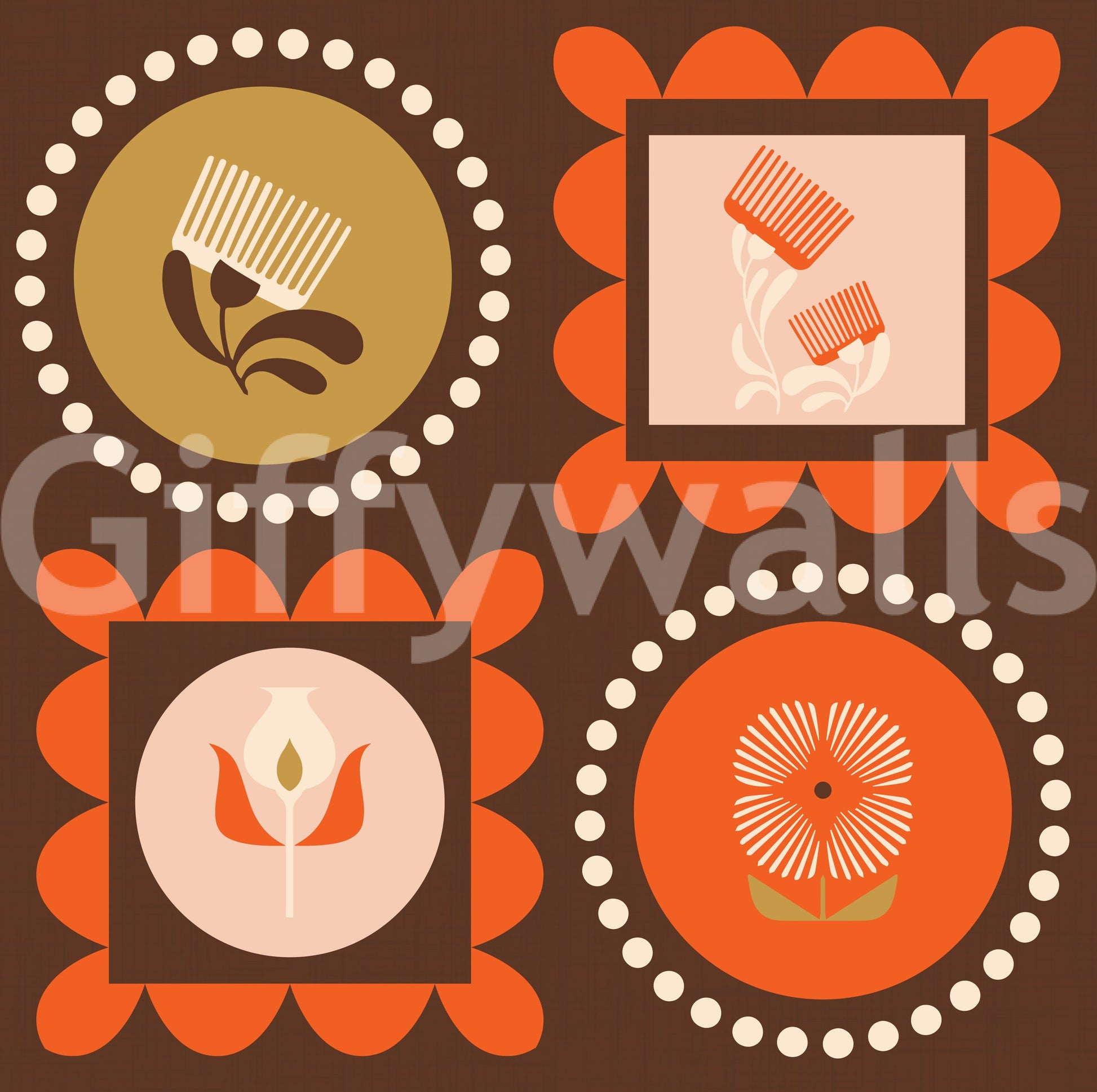 Erwecken Sie den Geist der 1960er-Jahre mit dieser Wanddekoration „Mid Mod Wildflower Frames“. Markante geometrische Rahmen in Schokoladenbraun beherbergen eine Collage stilisierter botanischer Illustrationen. Verspielte Wildblumen in minimalistischer Ästhetik bringen einen Hauch Natur und Fantasie in jeden Raum. Die Vintage-inspirierte Farbpalette aus Schokoladenbraun, Terrakotta-Orange und warmen Neutraltönen erzeugt ein retro-modernes Flair. Ideal, um einen Blickfang zu schaffen oder einen Hauch von lässiger Eleganz hinzuzufügen, vereint dieses Stück mühelos Mid-Century-Modern-Design mit der Liebe zur Natur. Verwandeln Sie Ihre Wand mit dieser auffälligen und harmonischen Komposition in eine Galerie stilisierter Blüten und verleihen Sie Ihrem Zuhause einen Hauch verspielter Raffinesse.