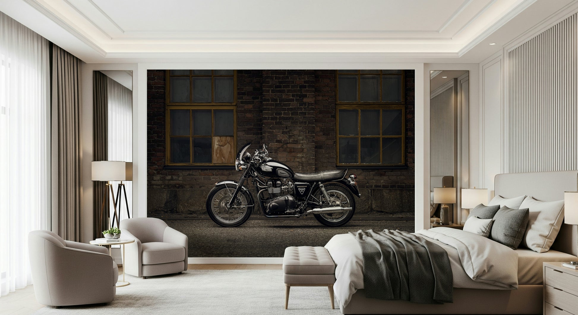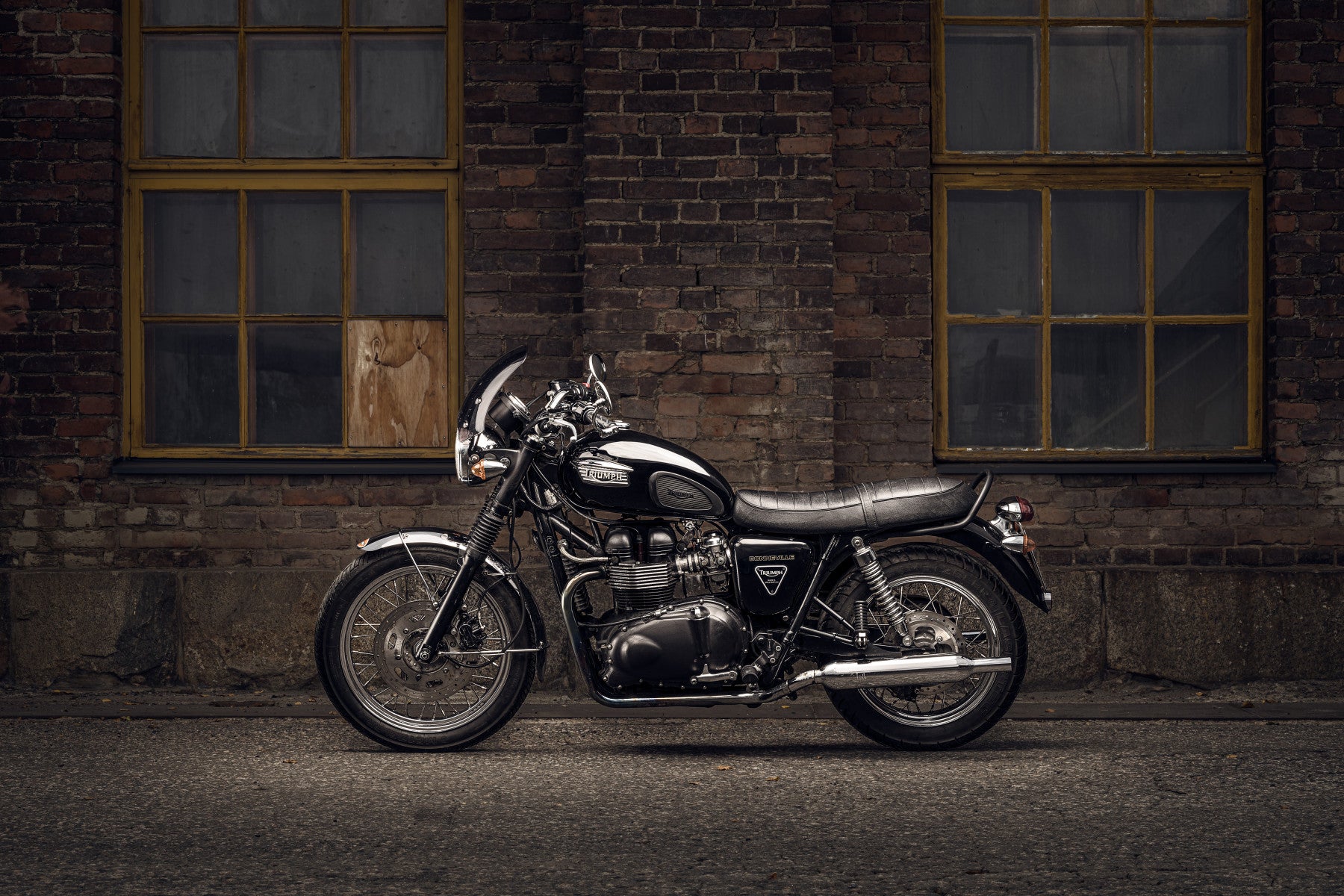 Capture the essence of classic motorcycling with 'Bonneville Ride'. This wallpaper features a stunning Triumph Bonneville, poised and ready against a backdrop of weathered brick and aged windows. The bike's sleek black finish and gleaming chrome accents are beautifully contrasted by the rough texture of the brickwork, creating a visually compelling scene. The image evokes a sense of timeless style and the thrill of the open road. It's perfect for motorcycle enthusiasts, lovers of vintage design, or anyone seeking a touch of rebellious elegance for their digital space. Let the 'Bonneville Ride' wallpaper fuel your adventurous spirit every time you unlock your screen.