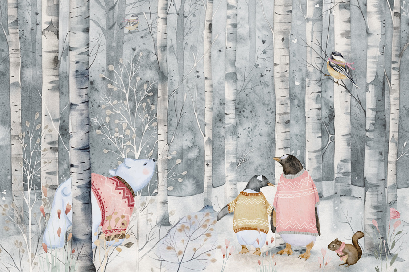 Discover our nursery wallpaper featuring cartoon-style rabbits, foxes, pandas, and squirrels, adding cuteness to the extreme. It refreshes the little ones and sparks curiosity about the four-legged furry friends.