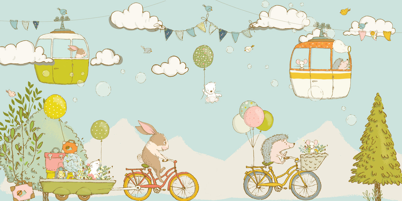 Discover our nursery wallpaper featuring cartoon-style rabbits, foxes, pandas, and squirrels, adding cuteness to the extreme. It refreshes the little ones and sparks curiosity about the four-legged furry friends.