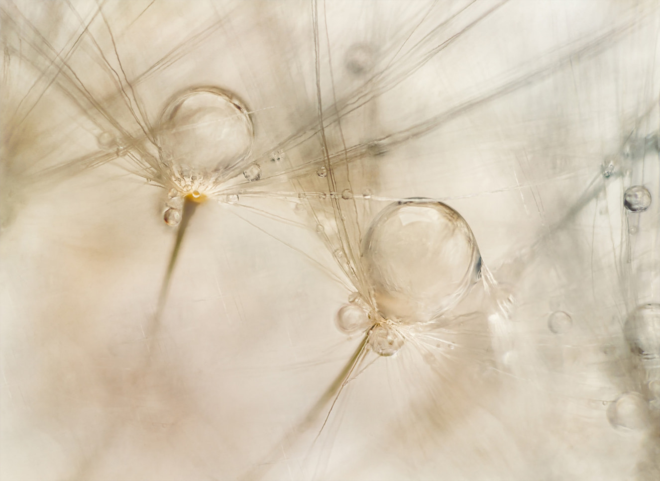 Add serenity to your bedroom with the floral wallpaper with floating seeds. Full-sized murals add a dreamy touch to this room.