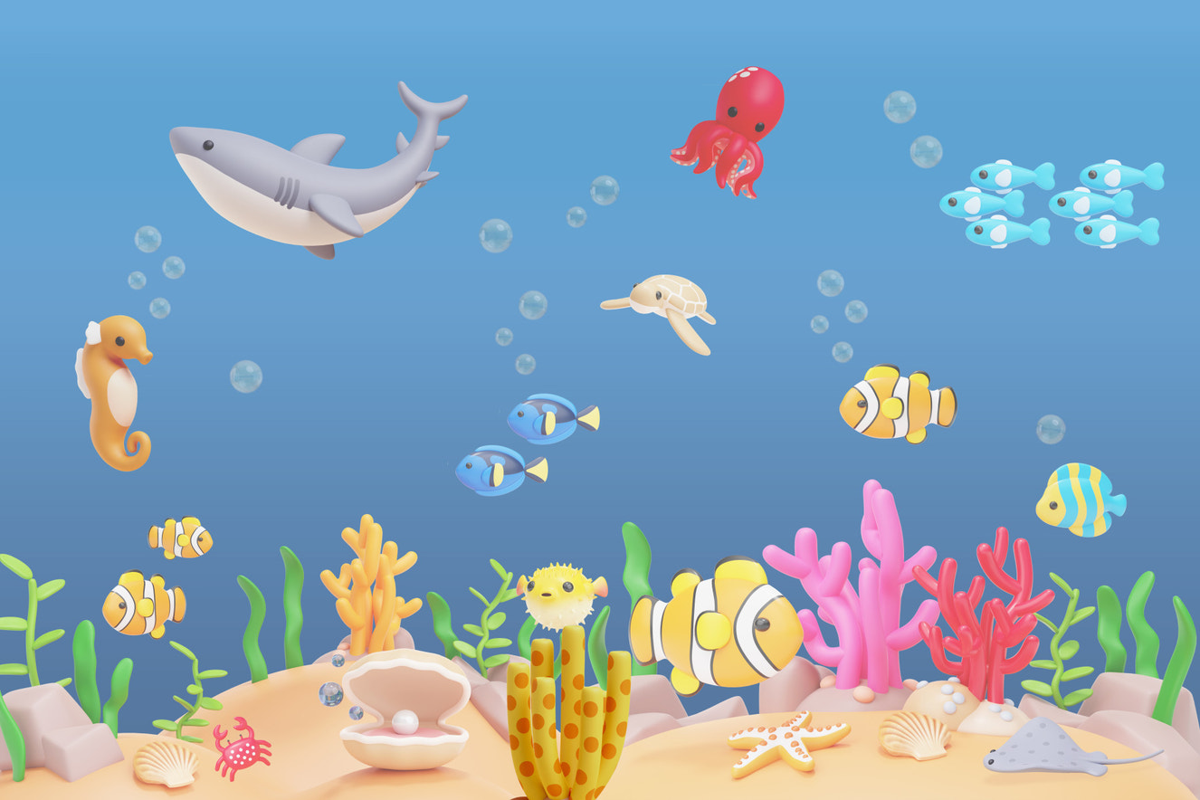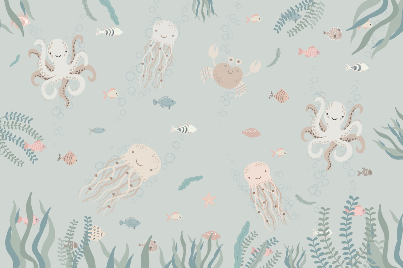 Sea Pattern takes on a charming and quirky way of introducing oceanic life with a cute pattern of cephalopod and sea creatures. Perfect if you are looking for nursery wallpaper or children's wallpaper, as the kids can use this as a creative play stage.