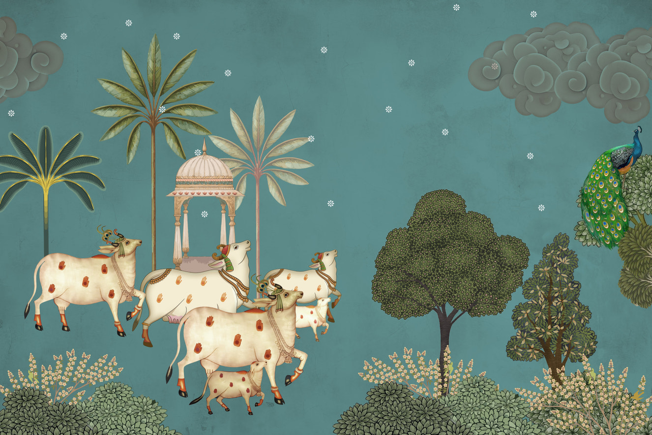 Probably the most royal appeal amongst all, the Mystic jungle wallpaper with peacocks is mesmerizing decor for elite homes. It ranges from green to emerald, and dark to beige tone, depending on the mood of the art. It's often peaceful and is perfect Bedroom wall murals with serene visuals.