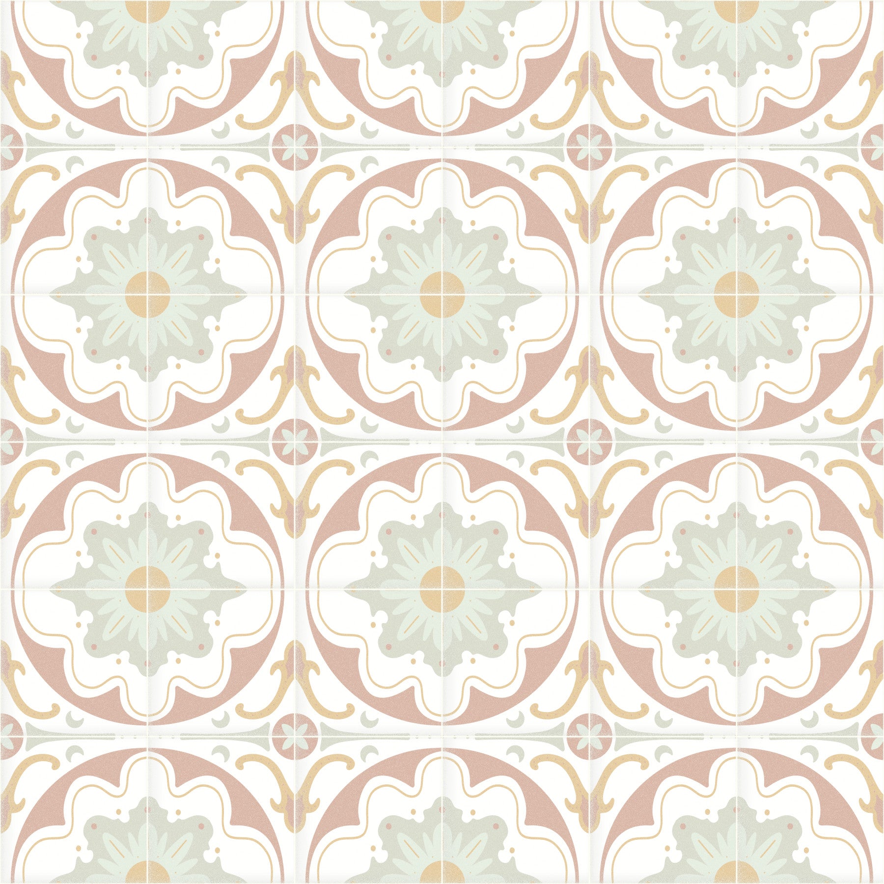 Evoke a sense of timeless elegance with our Aged Cement Tile Backsplashes - Powder wallpaper. This design captures the subtle beauty of aged cement tiles, reimagined with a soft, powdery palette. Delicate floral motifs intertwine within circular borders, creating a sophisticated pattern that exudes vintage charm. Gentle hues of blush pink, muted green, and pale gold combine to create a calming and inviting ambiance. The texture subtly mimics the feel of aged cement, adding depth and character to your walls. Perfect for kitchens, bathrooms, or any space seeking a touch of classic refinement, this wallpaper offers a durable and stylish way to achieve the look of authentic cement tile without the maintenance. Embrace the understated luxury of the past with this exquisite design, ideal for creating a serene and sophisticated atmosphere.