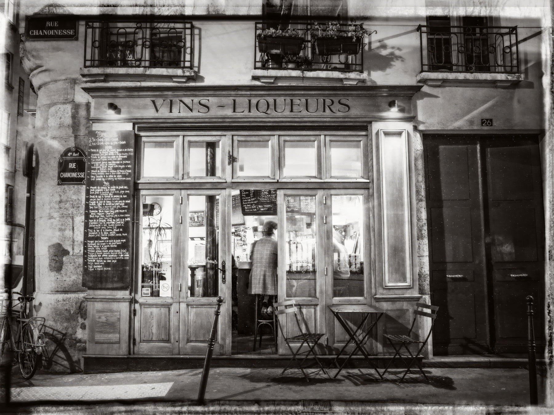 Vintage Paris bar mural wallpaper for creating a charming vibe.