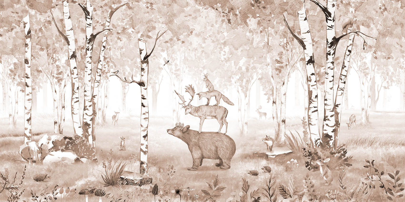 Brown bear king wallpaper with woodland animals and trees