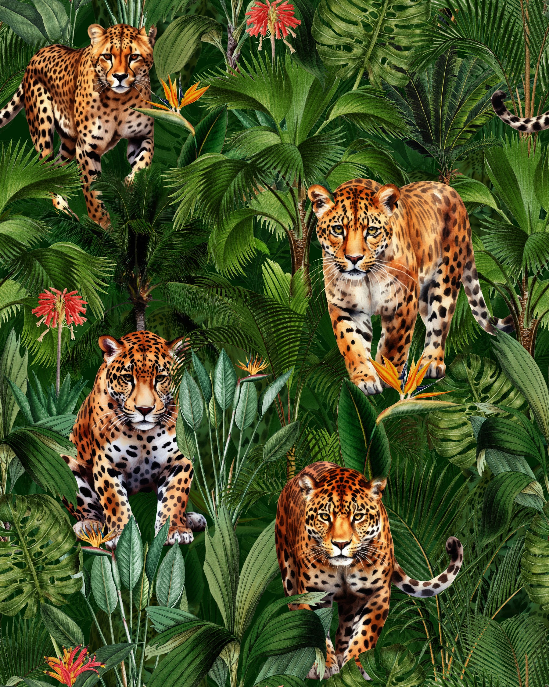 Rich, detailed wallpaper with majestic big cats and tropical plants