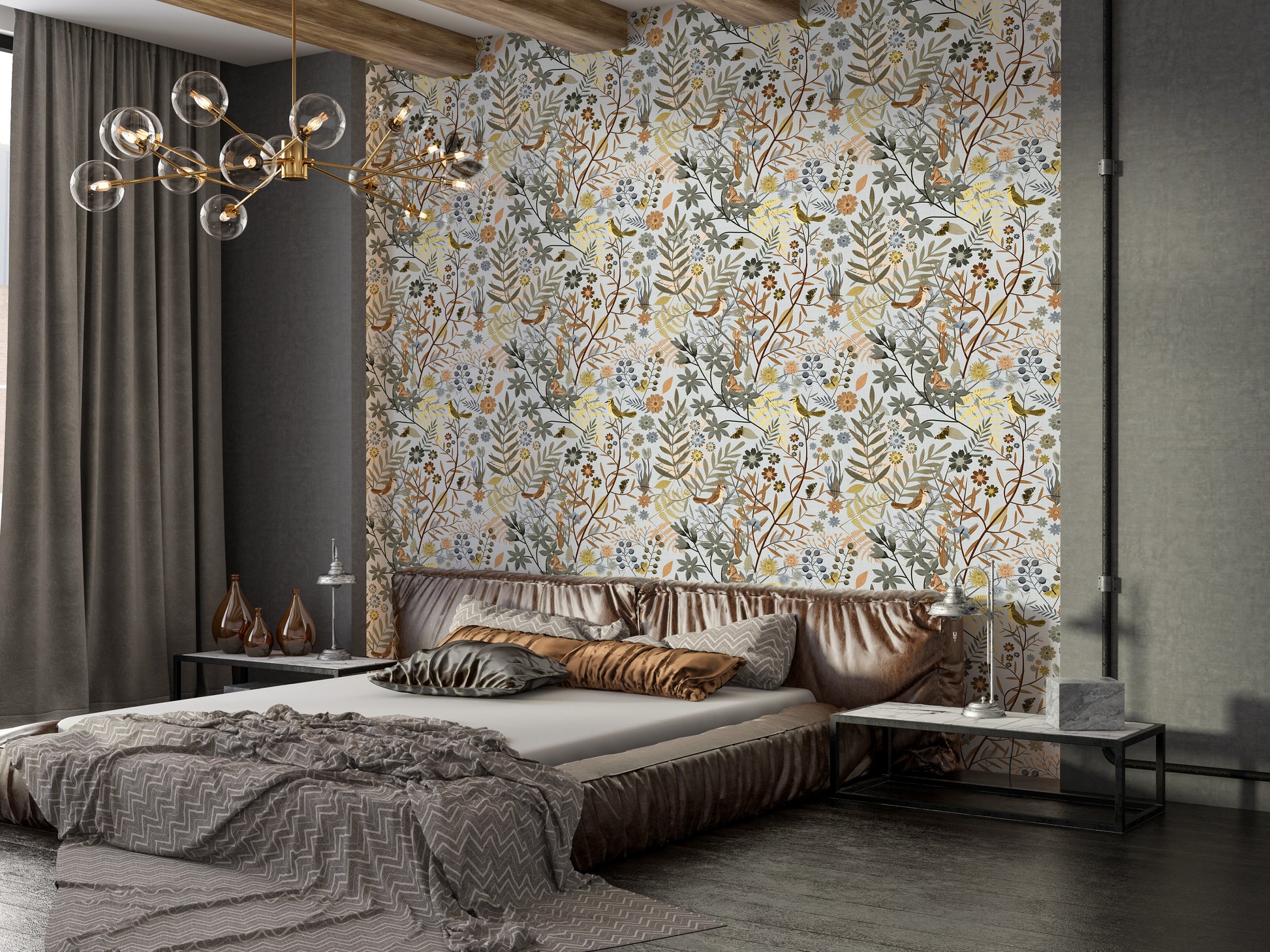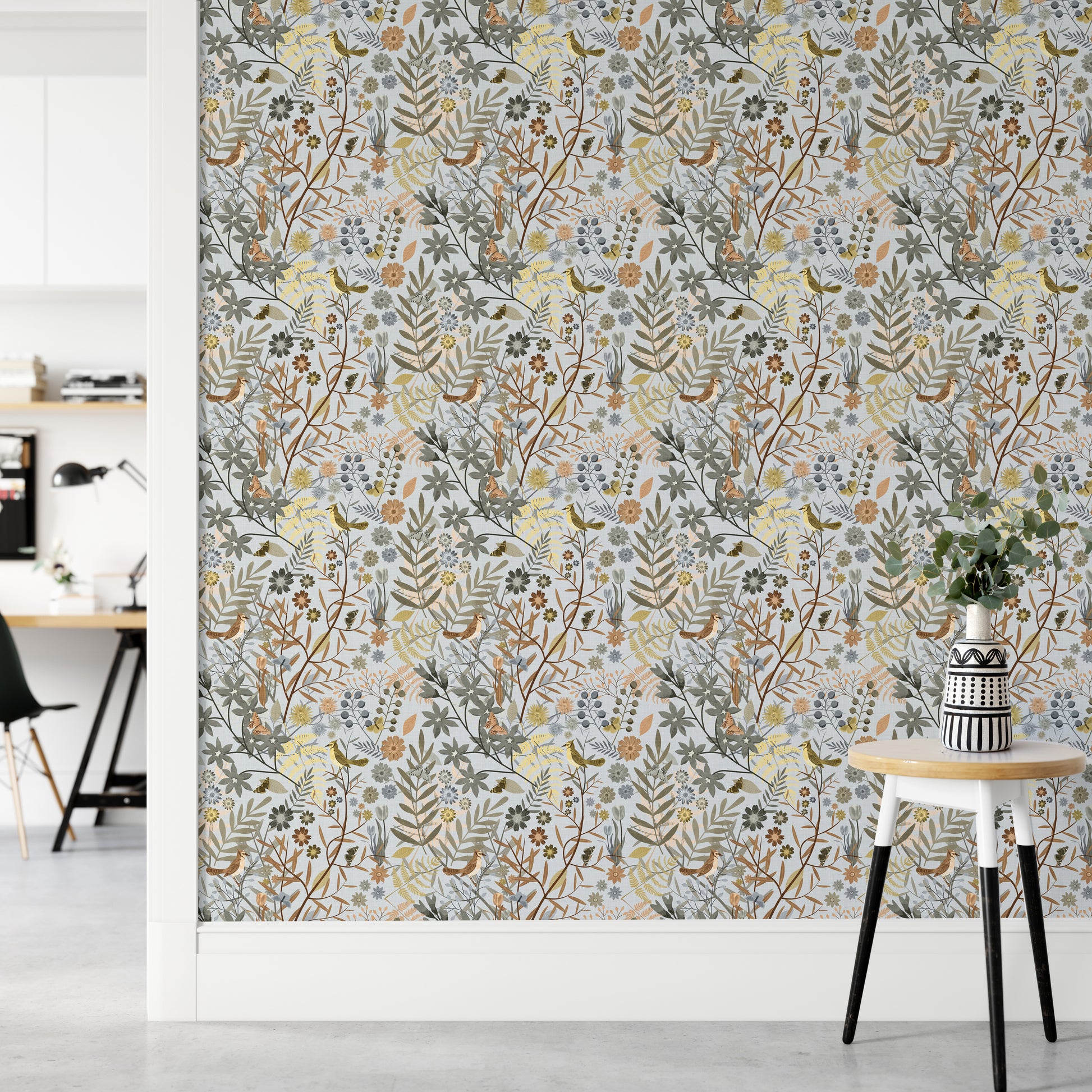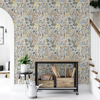 Step into a peaceful woodland sanctuary with our Birds Garden Golden Gray Wallpaper. This enchanting design features delicate birds perched among wildflowers, berries, and lush botanical foliage in soft golden, gray, and muted earthy hues. Butterflies and blooms add a whimsical charm, making it perfect for nature lovers and vintage decor enthusiasts alike. The subtle linen-textured backdrop gives it an artisanal, hand-illustrated feel that brings depth and elegance to any space. Ideal for bedrooms, hallways, or reading nooks, this wallpaper transforms your walls into a serene garden escape filled with quiet beauty and timeless style.