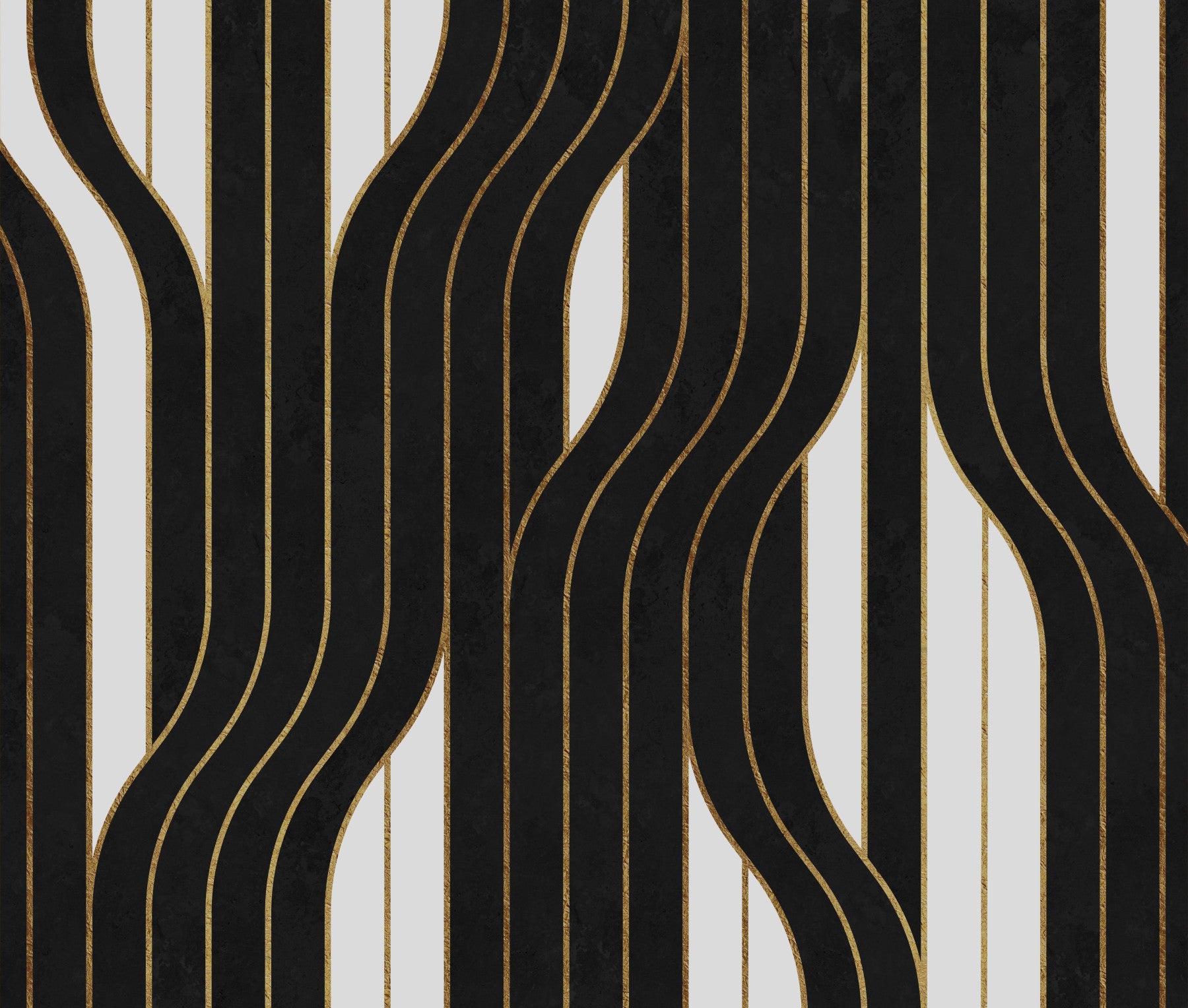 Embrace the epitome of modern sophistication with Black and White Luxury Lines a wallpaper design that redefines elegance. This stunning artwork features a captivating interplay of bold black textured stripes and crisp white, punctuated by delicate lines of shimmering gold. The dynamic composition balances structured verticals with gracefully curving bands, creating a visual rhythm that is both calming and invigorating. The juxtaposition of matte textures and metallic accents adds depth and a touch of opulence, making it a focal point in any space. Perfect for creating a statement wall in a living room, adding a touch of refinement to a bedroom, or elevating a home office, this wallpaper transforms any room into a sanctuary of style. Let the understated luxury of "Black and White Luxury Lines" bring timeless beauty and modern artistry to your home.