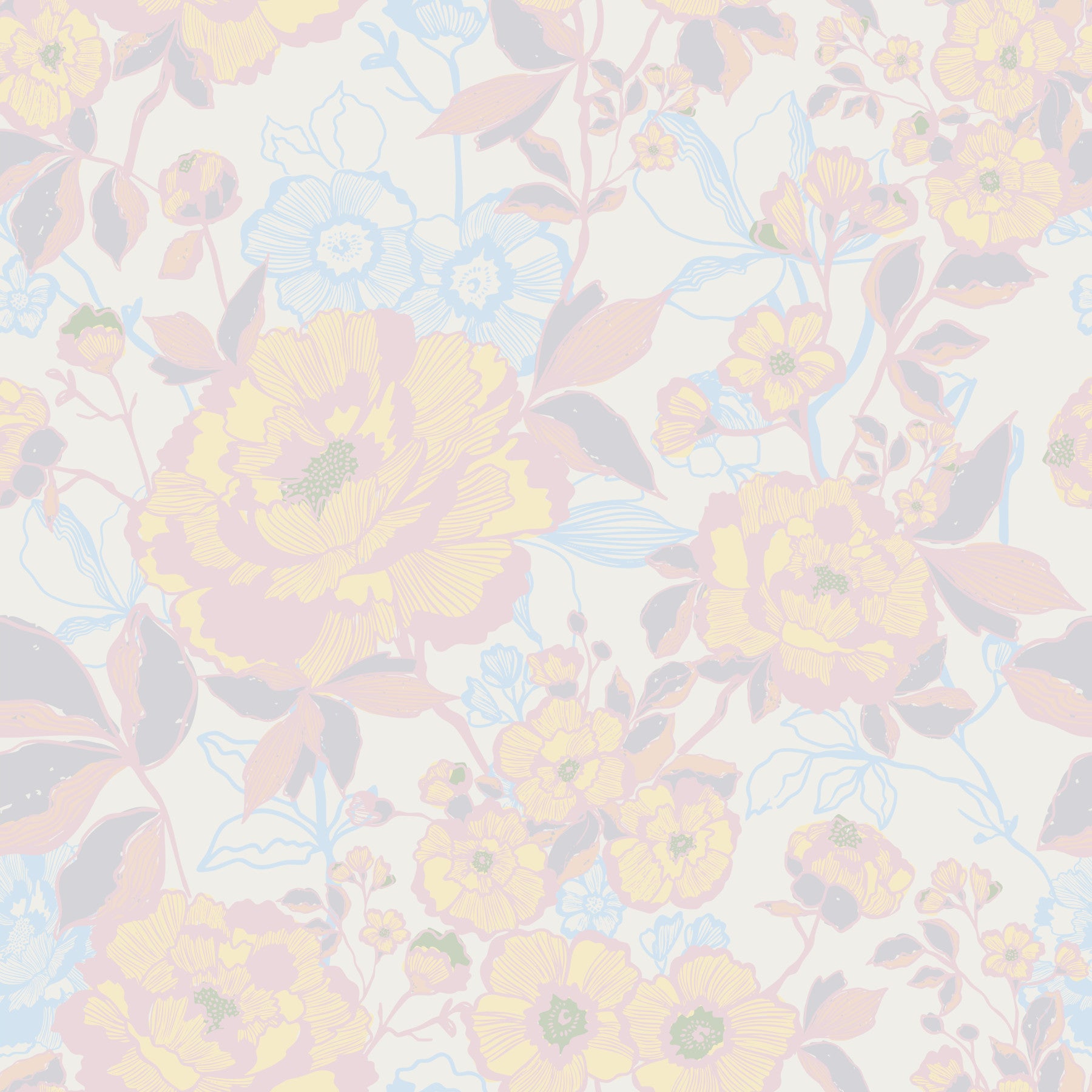 Discover the soothing allure of this delicate floral design. It presents a beautiful dance of pastel shades across its surface, featuring light pink, soft yellow, and gentle blue hues. The design brings a calming presence to spaces. Use this wallpaper for walls to softly enhance your living room or create a peaceful ambiance in a bedroom. Its intricate floral patterns and muted tones complement interiors with minimalist or classic design elements. The floral style provides rooms a refreshing, artistic charm.