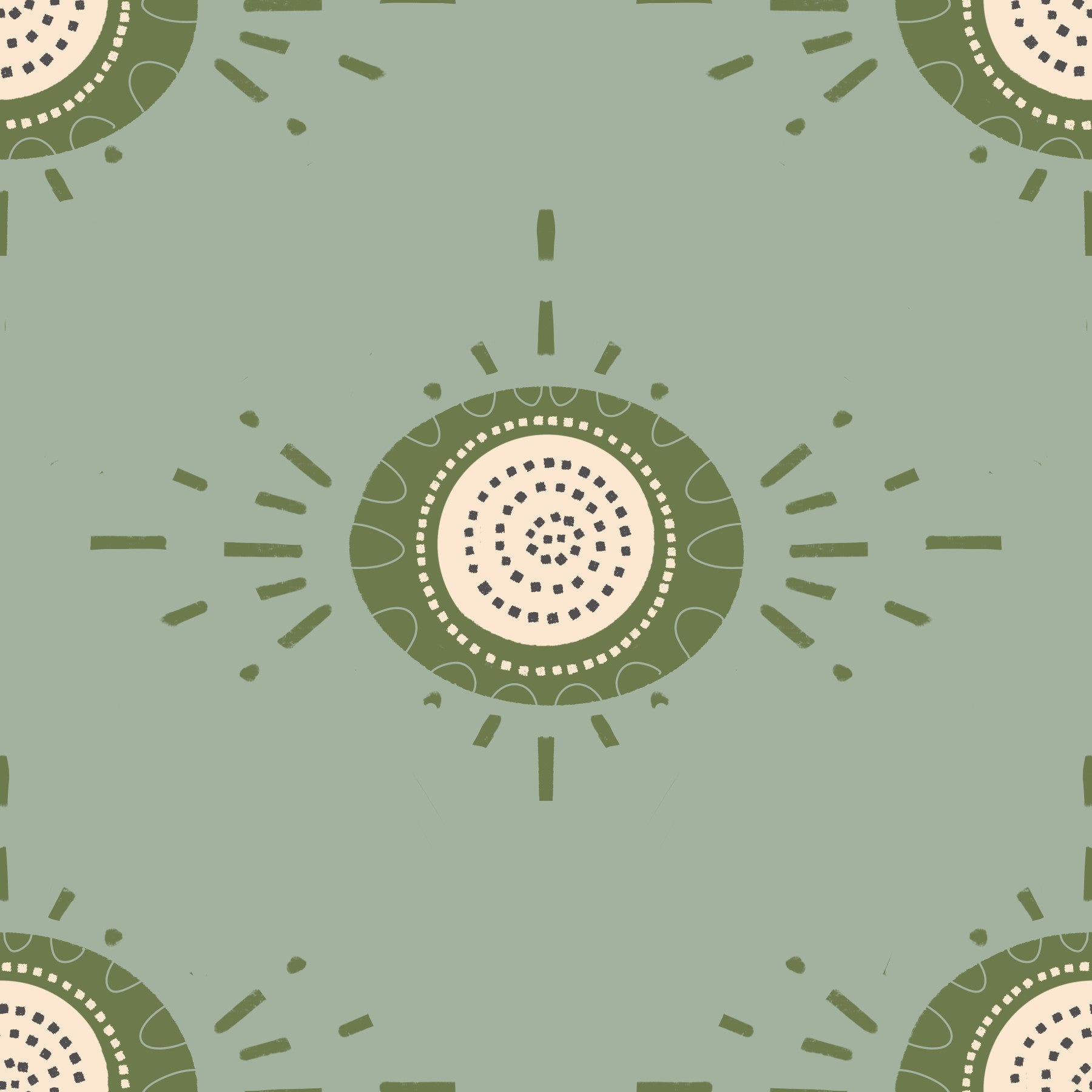 Embrace the subtle sophistication of Bloom Light Sage Olive a wallpaper design that effortlessly blends Scandinavian simplicity with mid-century modern charm. The muted palette of light sage and olive green evokes a sense of calm and organic elegance, creating a soothing backdrop for any space. Abstract floral motifs, rendered in a minimalist style, suggest the essence of blossoming nature without overwhelming the senses. This wallpaper's clean lines and geometric shapes echo the iconic designs of the mid-century era, while the gentle floral inspiration brings a touch of Scandinavian warmth and comfort. The design features circular blooms with radiating strokes, giving a sense of growth and gentle light. Perfect for creating a serene and stylish atmosphere, "Bloom Light Sage Olive" is ideal for bedrooms, living rooms, or any area where you seek a touch of understated sophistication and a nod to timeless design.