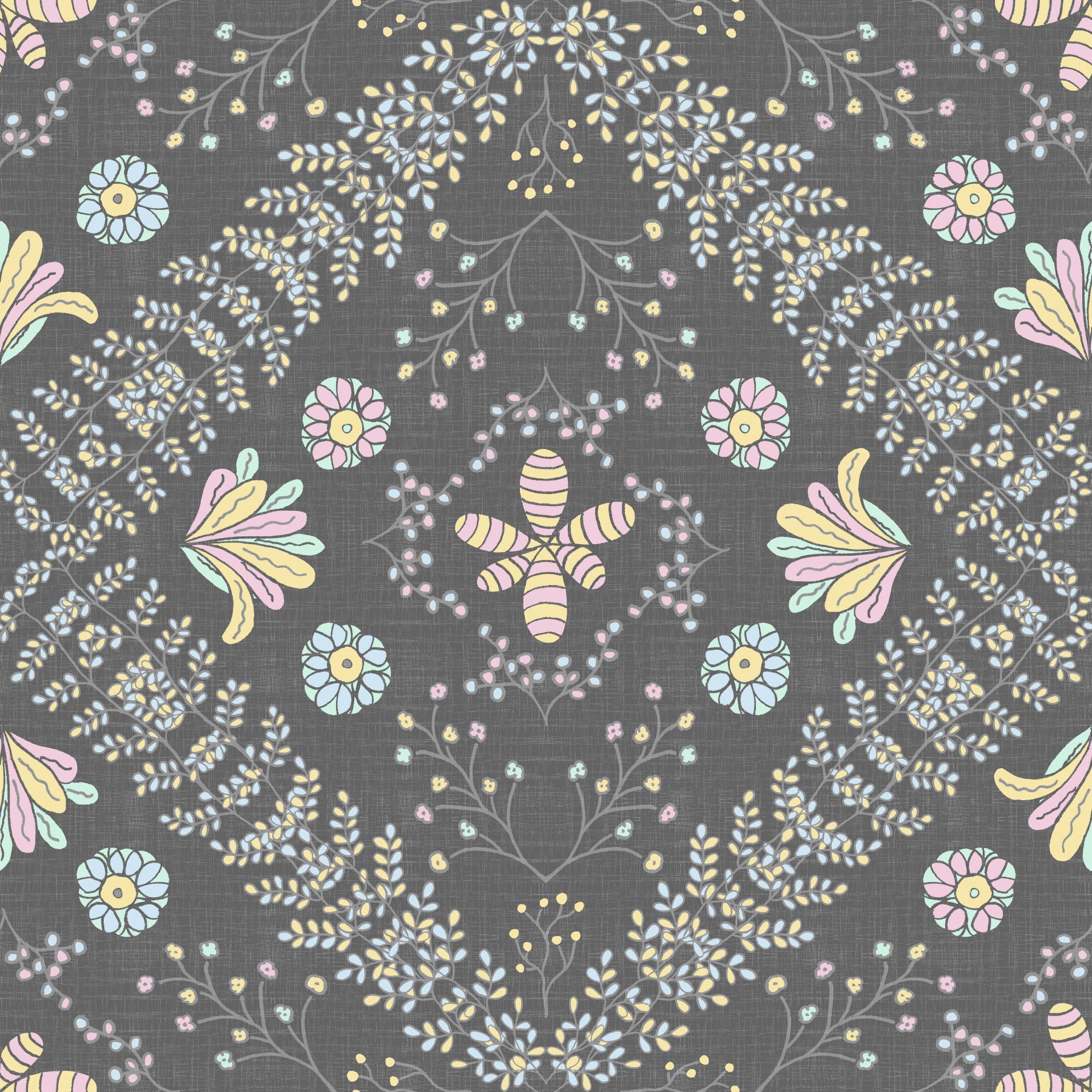 delicate botanical pattern on a gray background