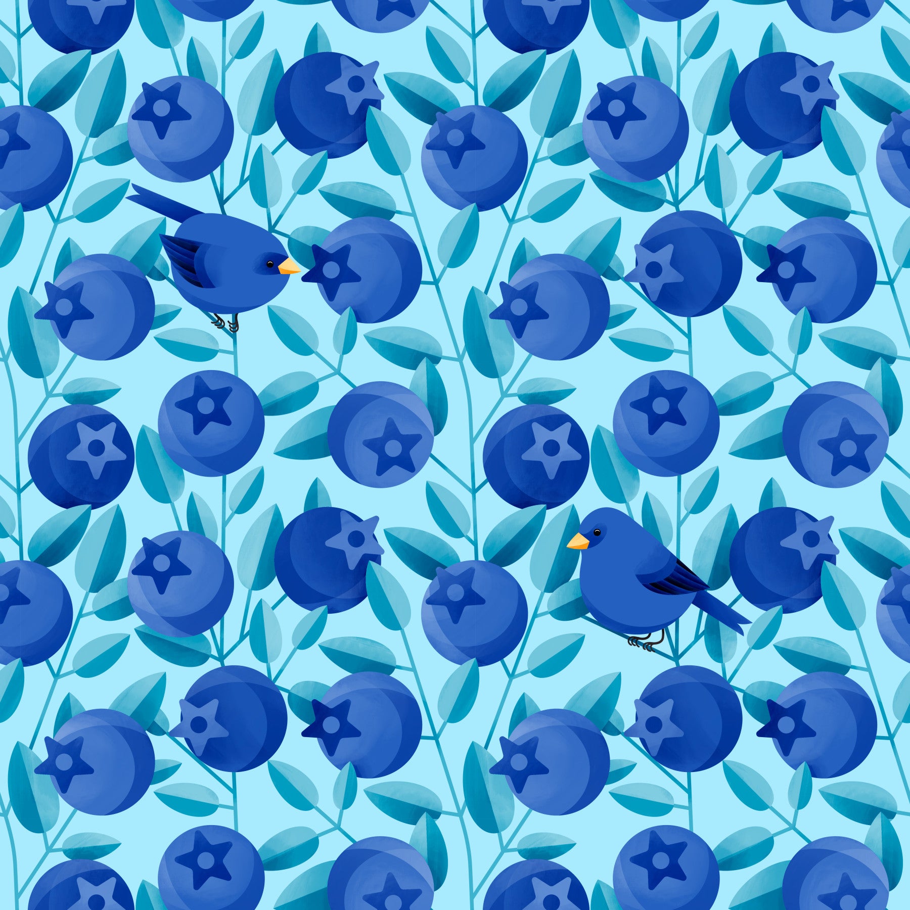 Blue birds among blueberries wallpaper