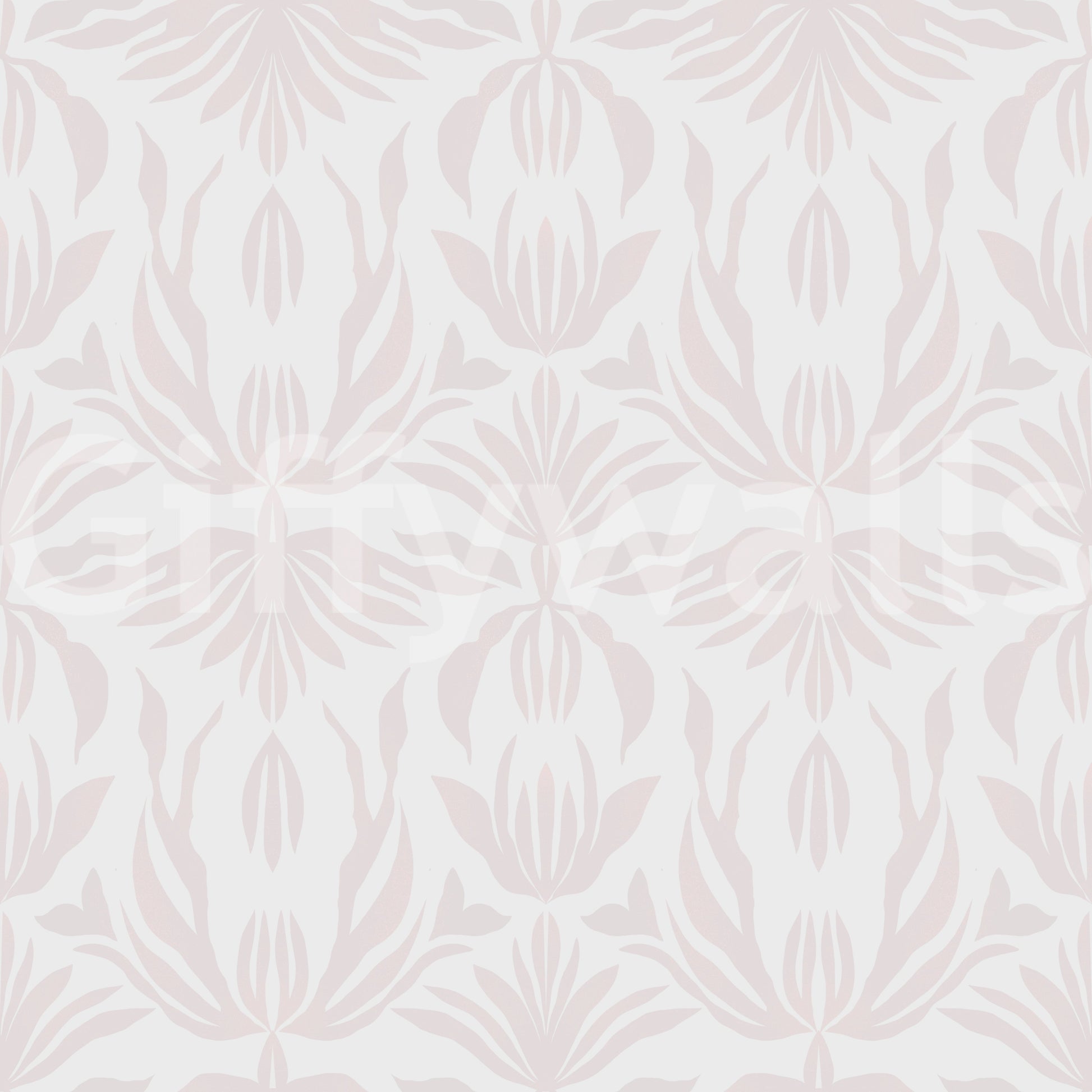 Bring subtle organic charm to your living space. This design showcases mirrored floral motifs in a light blush tone across a pale background. This wallpaper for walls offers a tranquil, understated luxury. Consider this design in bedrooms, living areas, or even a home office. The gentle colors and balanced pattern serve as a sophisticated backdrop. Its calming presence allows the design to complement a variety of interior aesthetics effortlessly.