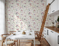 Bring the tranquility of a spring meadow indoors with this delightful floral wallpaper by Uta Naumann for walls. Watercolor butterflies flutter among delicate wildflowers and ferns in shades of blush pink, lilac, and soft green. The gentle brushstrokes create a painterly effect that adds depth and texture to any space. This versatile design complements a variety of interiors, from cozy bedrooms and nurseries to elegant living rooms and hallways. Its calming color palette makes it perfect for creating a serene and inviting atmosphere.