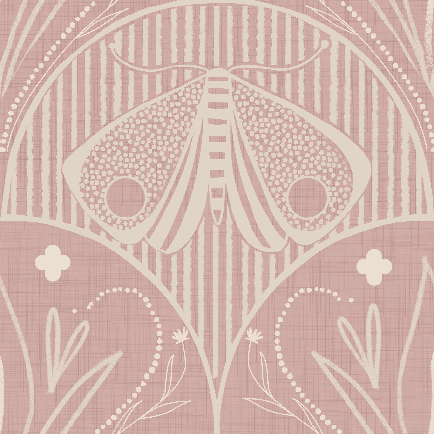 Boho Art Nouveau Scallop Butterfly Floral in Cream and Dust Pink Wallpaper⁠