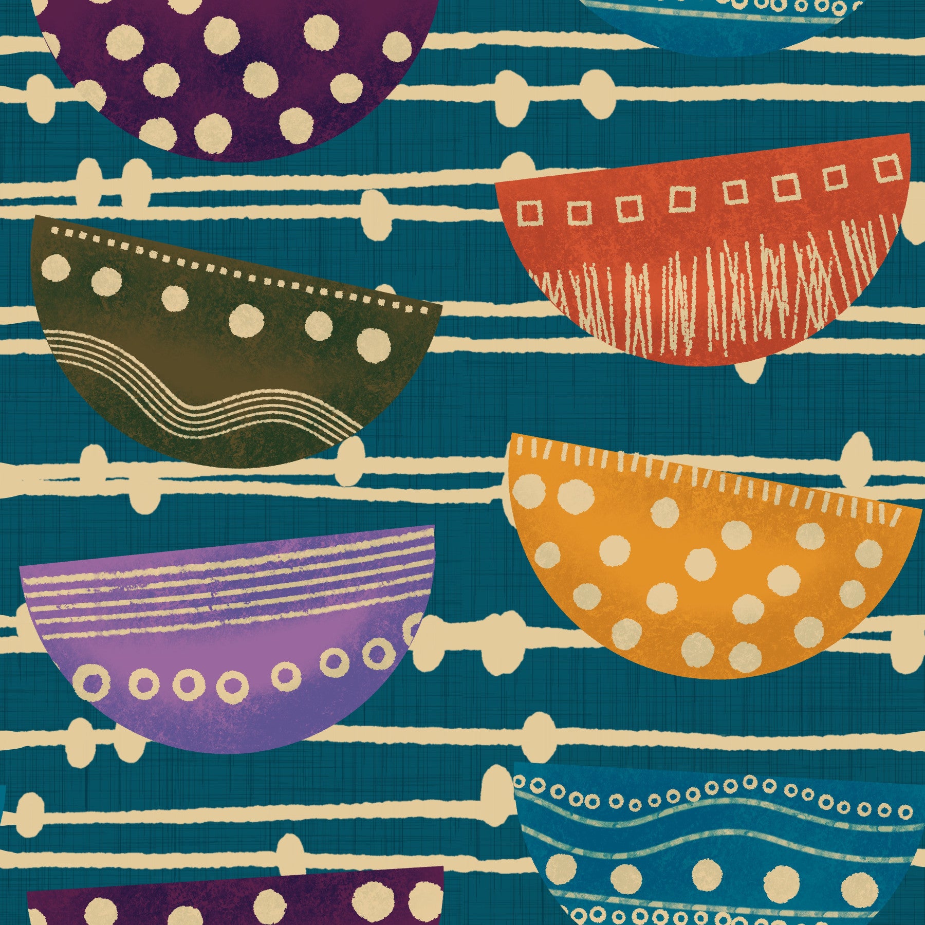 Boho Jewel Tone Retro Bowls Teal Wallpaper⁠