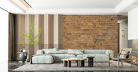 This stunning wallpaper for walls replicates the visual texture of classic brick. The design features a horizontal layout of rectangular bricks in varying shades of beige and tan. This pattern adds depth and a touch of rustic elegance to any space. The textured effect can give a room a warm, inviting feel. It works wonderfully in kitchens, living rooms, or hallways, creating a comfortable atmosphere that complements both modern and traditional decor.