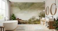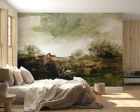 Transform any space with this expressive wallpaper. It displays sweeping brushstrokes that capture a natural landscape. The design features a blend of earthy brown, soft green, and muted beige tones. This wallpaper for walls adds depth and texture, lending a painterly feel. It fits well in living rooms, bedrooms, or even a home office. It brings an artistic touch and complements minimalist or rustic interiors with its calm presence.