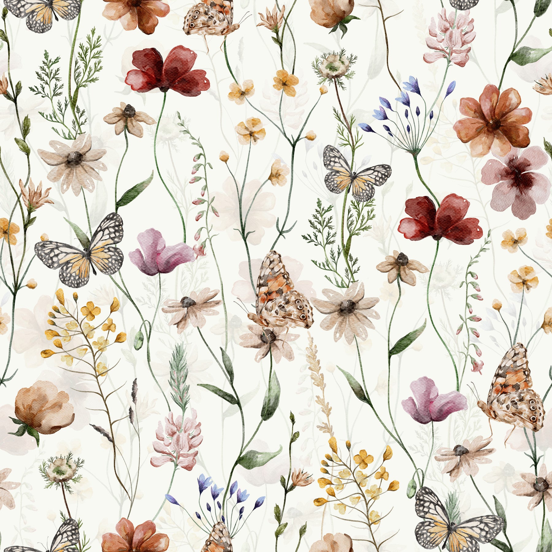Beautiful Wild Meadow Butterfly pattern cottage core wallpaper.