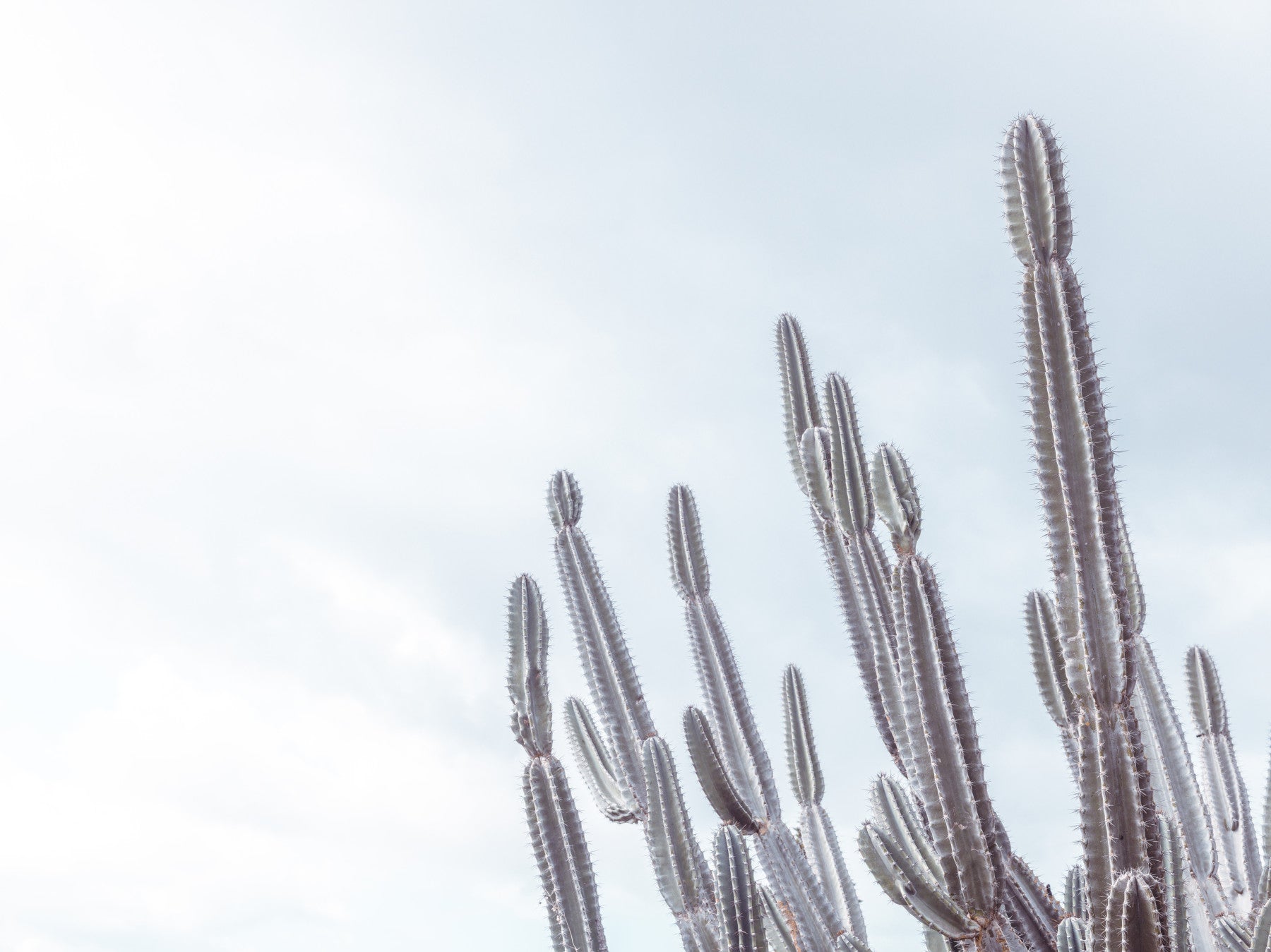 Cacti against blue sky. Transform any room with this design showcasing cacti reaching for the heavens. This nature-inspired wallpaper draws the eye upward. Gentle colors instill a sense of peaceful scale. This wallpaper for walls offers a minimalist design statement. It suits spaces aiming for a soothing atmosphere, such as a bedroom or meditation room. This design enhances interiors embracing a nature-inspired aesthetic and complements rooms decorated with soft hues and clean lines.