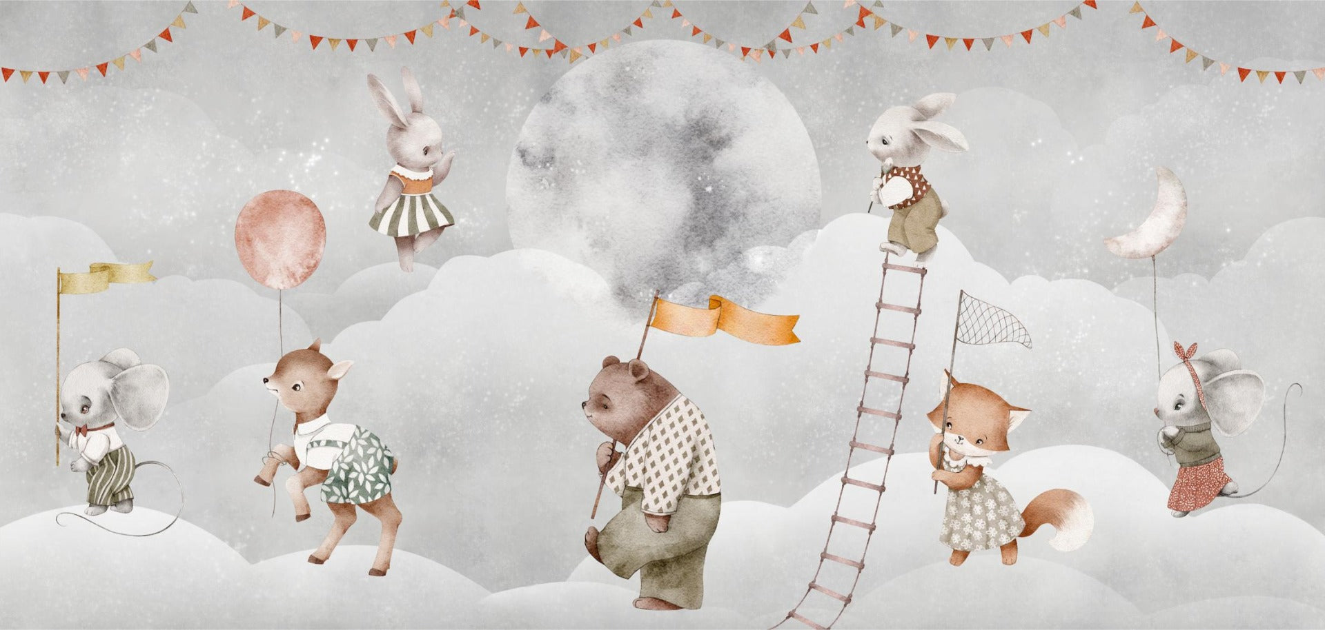 Animal cloud wallpaper for celestial-themed baby nurseries