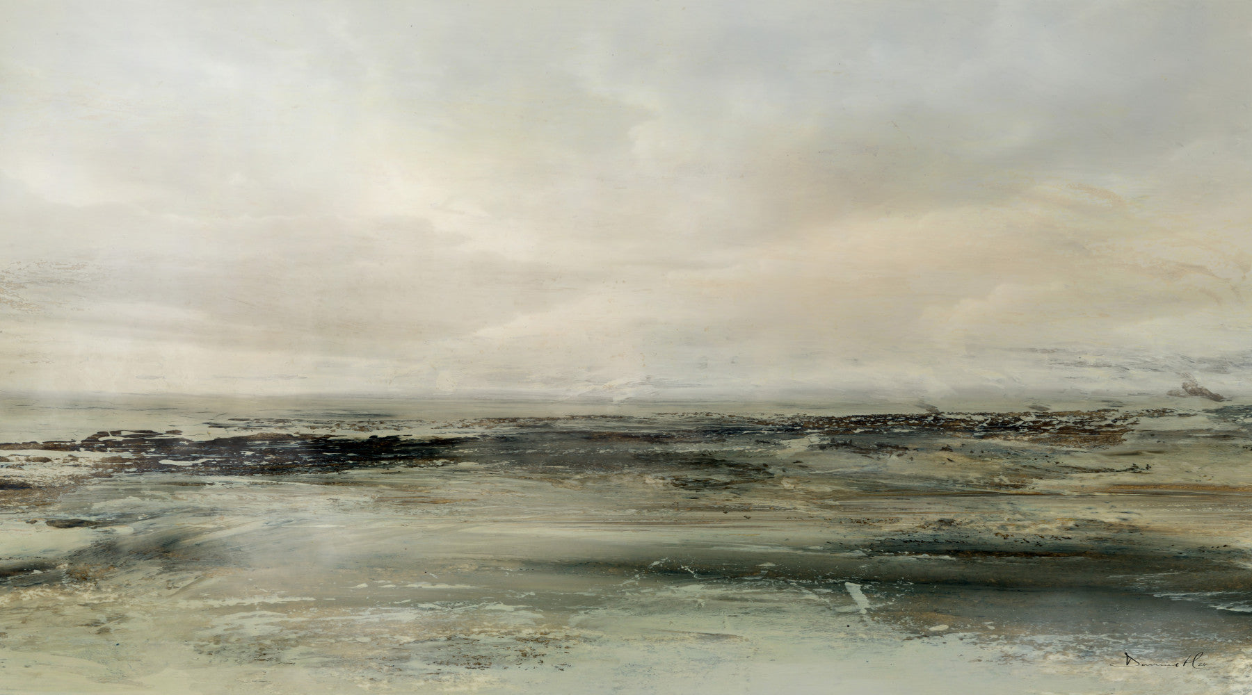 This serene wallpaper features a muted seascape that brings a sense of calm to any room. Earth tones blend to form a tranquil scene, perfect for spaces where relaxation is key. The gentle colors and abstract design make this wallpaper for walls a versatile choice. Its painterly effect works well in a living room or bedroom. The design complements interiors that lean towards a minimalist, modern, or even rustic aesthetic. It invites a peaceful atmosphere.