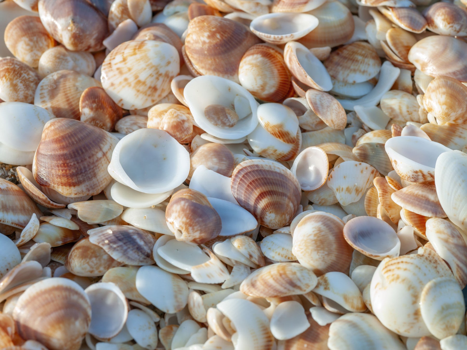 Warm sunlight Coastal seaside wallpaper abundant shells image.