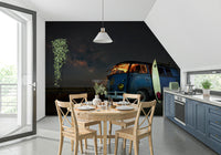 Embark on an interstellar journey with "Cosmic Rides," a wallpaper that blends earthly adventure with celestial wonder. A vintage blue VW bus, illuminated from within, stands silhouetted against the breathtaking canvas of the Milky Way. A surfboard rests beside it, a silent promise of dawn patrols and cosmic waves, capturing the spirit of freedom and exploration. The warm glow emanating from the van invites you to dream of starlit nights spent under the open sky, chasing sunsets and finding solace in the vastness of the universe. This image perfectly captures the essence of van life meeting cosmic exploration, a visual reminder that adventure awaits, both on Earth and among the stars. Let this wallpaper transform your screen into a portal to the ultimate road trip, where the destination is limitless and the journey is an unforgettable cosmic ride.