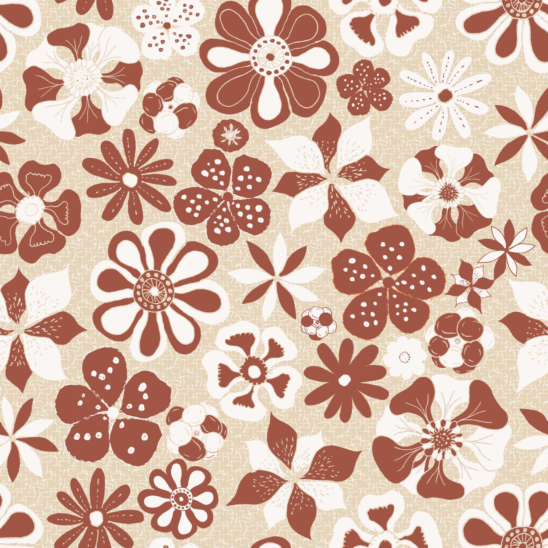 'Earthy Floral Tapestry' offers a sophisticated take on botanical wallpaper. Rich terracotta and creamy off-white flowers intertwine against a lightly textured beige background, creating a calming and elegant aesthetic. The detailed hand-drawn style adds a layer of artistry, while the seamless repeat ensures a cohesive and luxurious feel. Perfect for creating a serene atmosphere in living rooms, bedrooms, or even hallways, this wallpaper brings nature's elegance into your home.