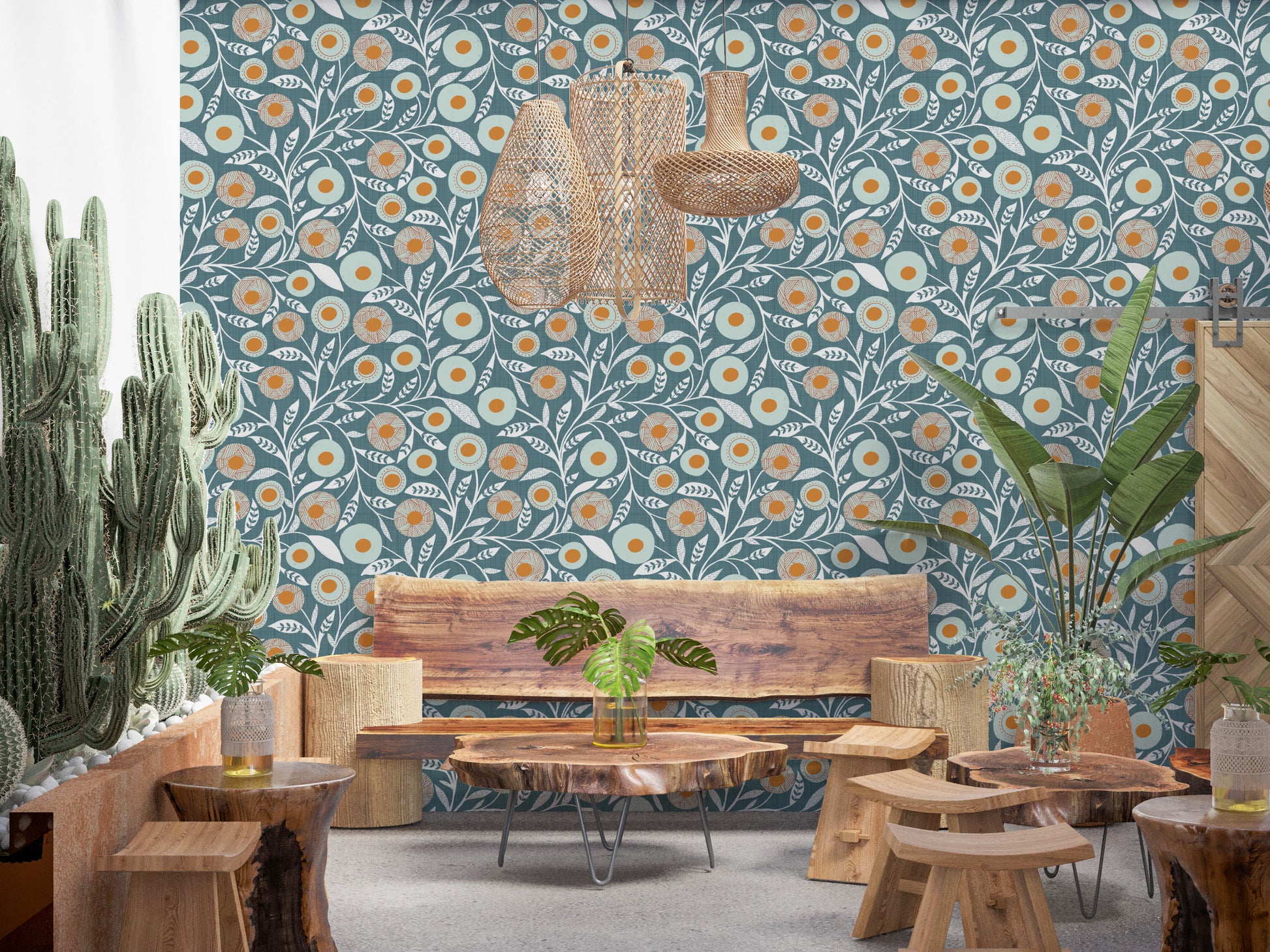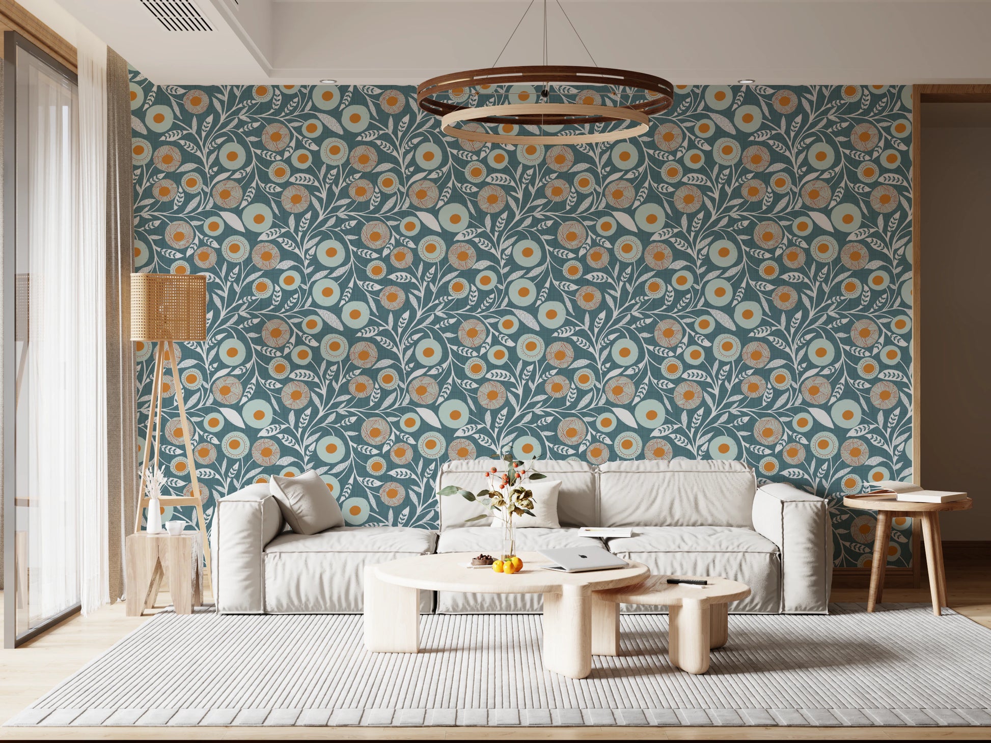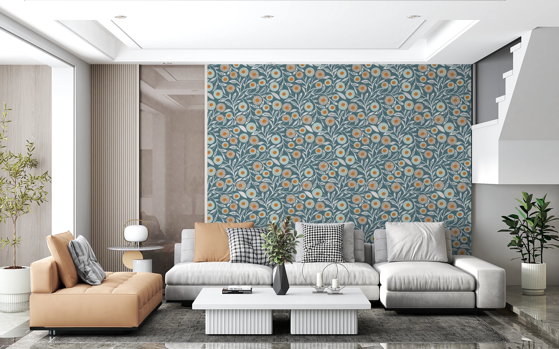 Transform your space into a haven of Nordic charm with this captivating wall décor. The "Cozy Scandi Folk Floral" design blends the simplicity of Scandinavian aesthetics with the warmth of folk art. A serene blue-grey backdrop sets the stage for a delightful display of stylized botanical elements. Hand-crafted textures and a palette of muted blues, soft greys, and earthy oranges create a comforting and inviting atmosphere. White branches playfully twist and turn amidst stylized flowers, forming an eye-catching yet harmonious pattern. Bring the beauty of nature indoors with a touch of Scandi style.