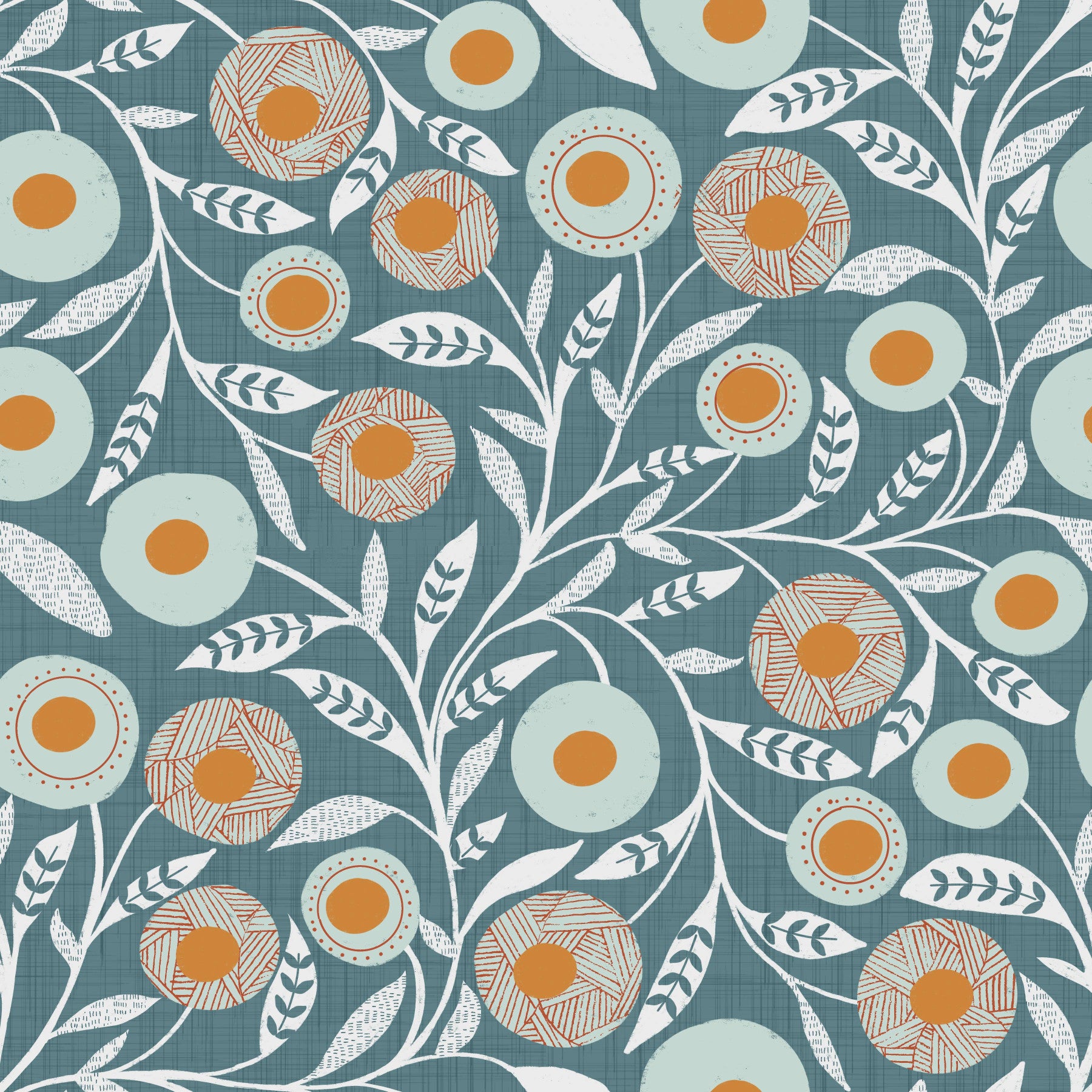Cozy Scandi Folk Floral Nordic Blue Grey - Craft Botanical Wallpaper⁠