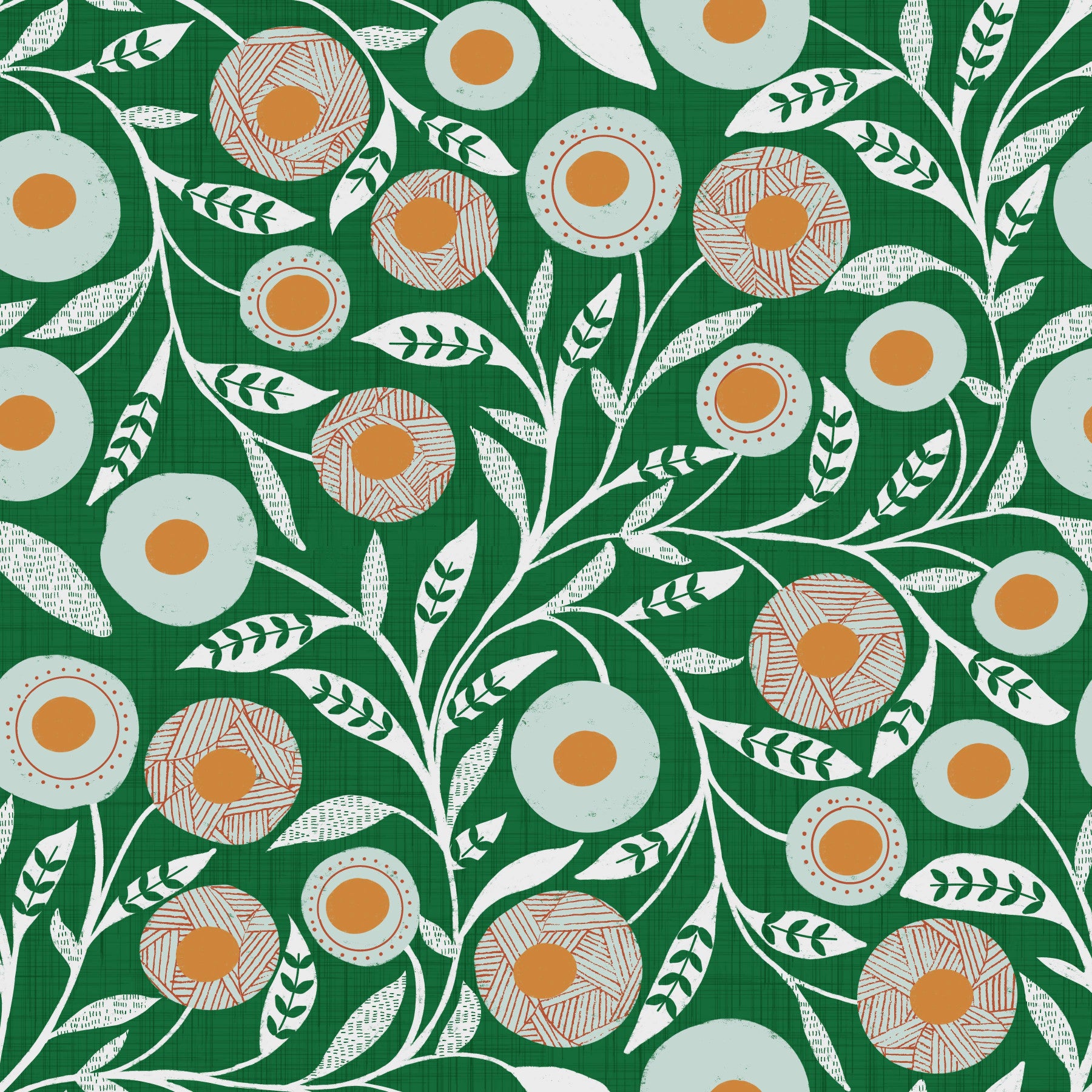 Cozy Scandi Folk Floral Olive Chartreuse - Craft Botanical Wallpaper⁠
