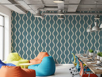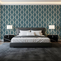 Cozy Scandi Folk Wavy Stripe Nordic Blue Grey - Craft Stripe Wallpaper⁠
