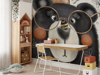 A creative bear-face wallpaper mural brings a playful, funny ambiance to your house. It gives a bear with oversized glasses, a crown, and a playful bee on its nose in this wallpaper mural. Your room will have fun and become lighter with these murals since they can add a lighthearted atmosphere to the most glamorous spaces. You can use them for a little girl's bedroom decoration or a cheerful living room. Shop now and get this unique, cute mural sent free shipping to your door, adding a creative touch to your home!