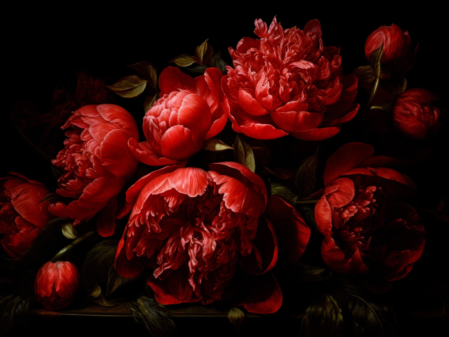 Rich, luxurious flowers in deep crimson and red hues.