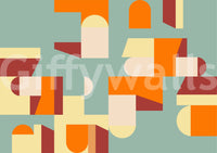 Abstract geometric wall mural with artistic shapes reflecting modern simplicity and comfort.