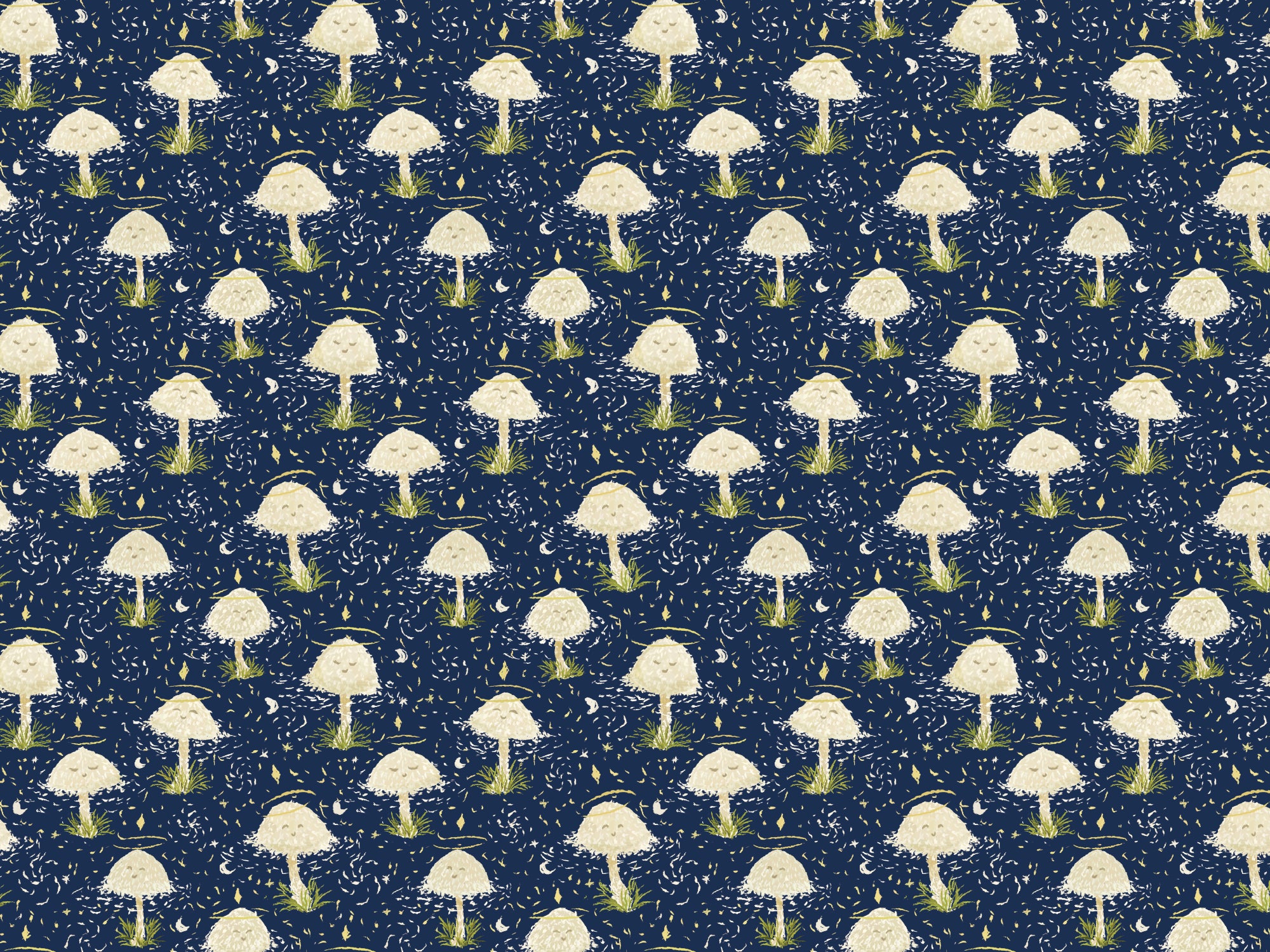 Fun and charming dancing mushrooms wallpaper for kids’ rooms.