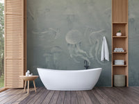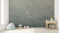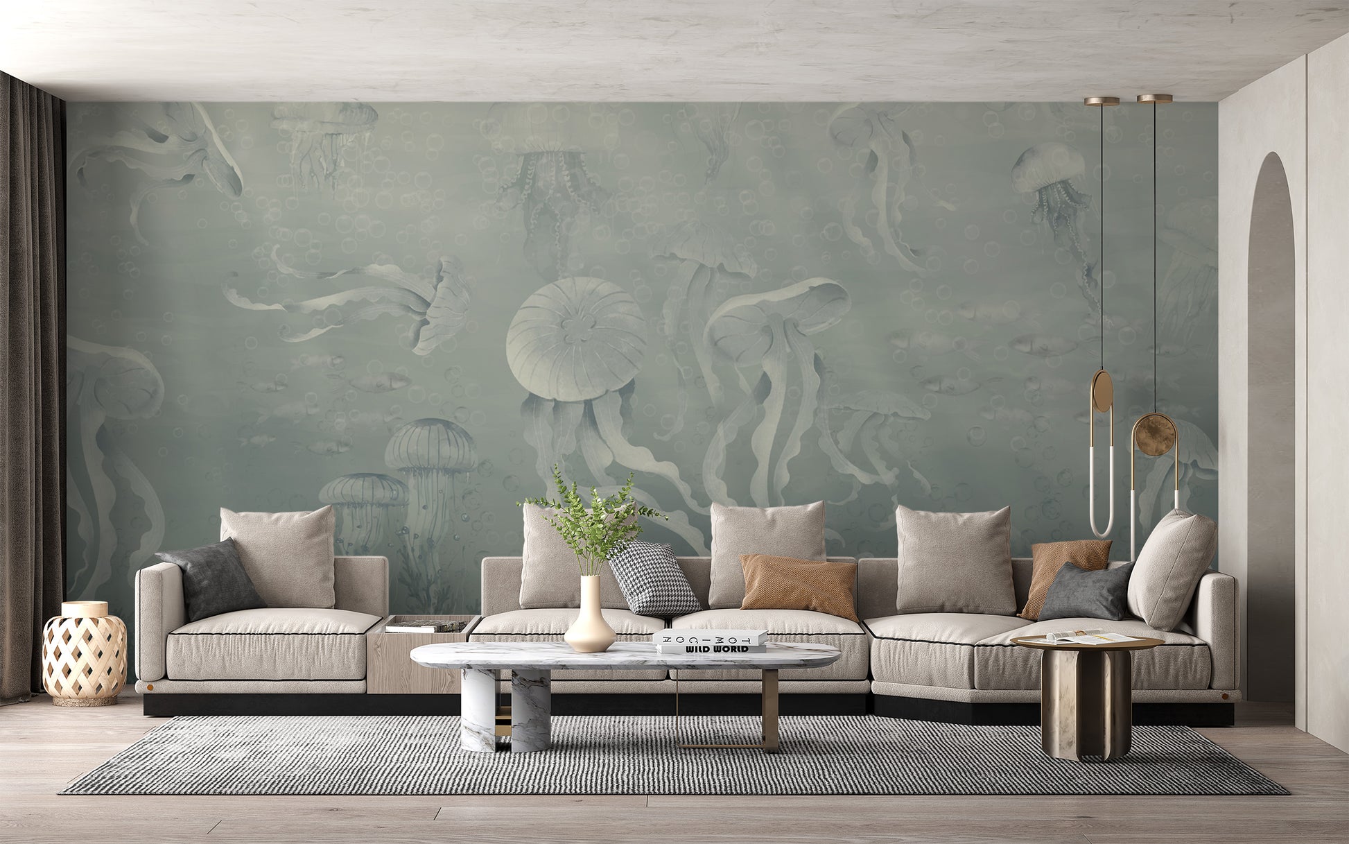 Deep sea ocean wallpaper mural with elegant jellyfish