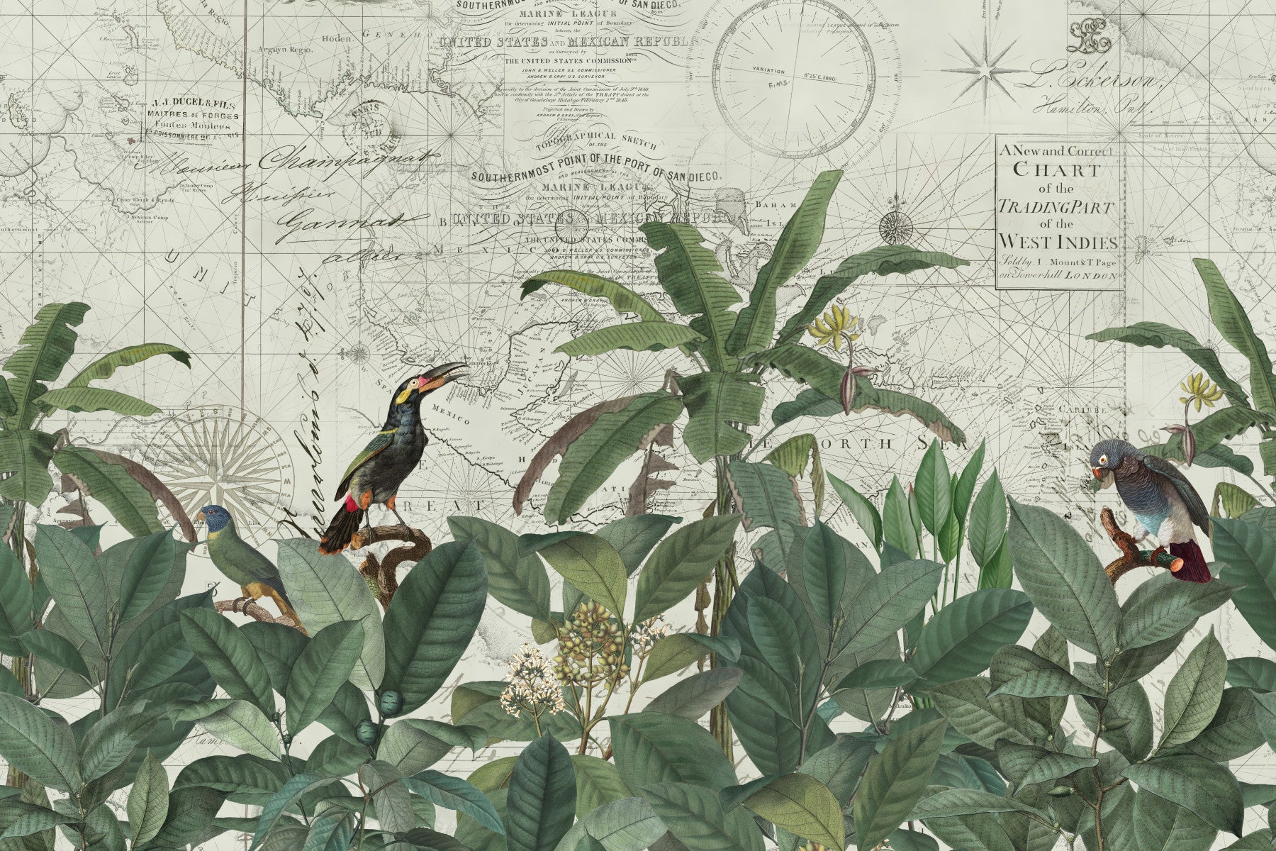 The Discover The Tropical Vintage World Wall Mural blends antique map details with lush jungle leaves and exotic birds. This mural wallpaper is a strong choice for living rooms, studies, or creative spaces where nature meets nostalgia. The muted greens and vintage chart lines add a timeless look, while the tropical birds add character and depth. This wall mural pairs well with wooden furniture, earthy tones, or brass accents. A great option for anyone looking for wallpaper for walls that captures history, nature, and quiet adventure in one well-balanced design.