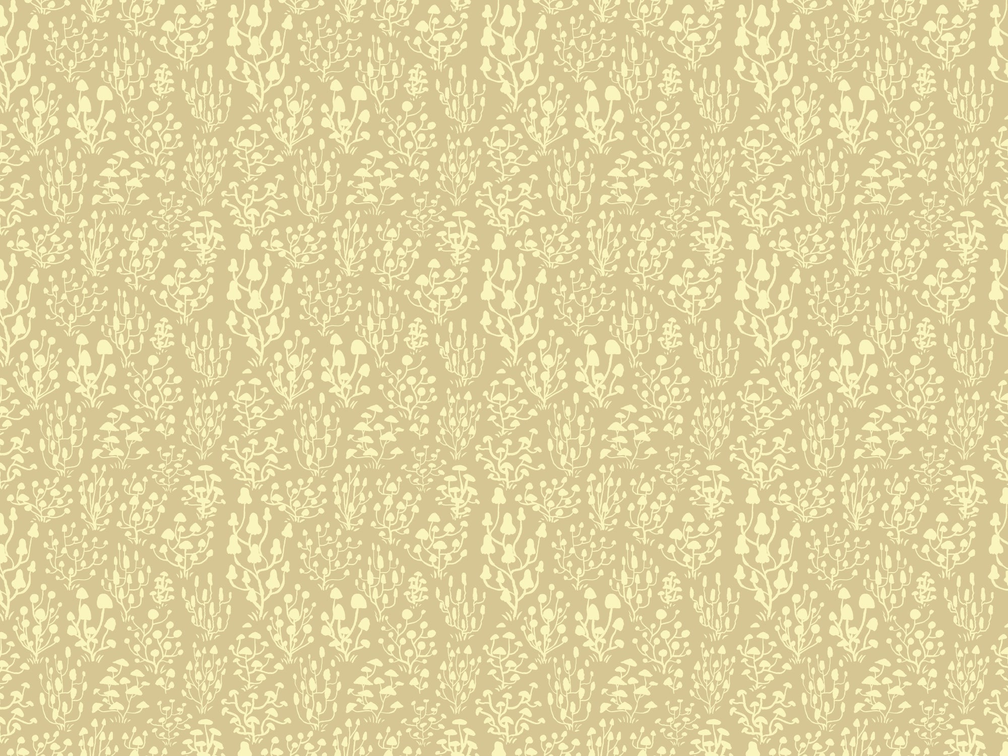 Nature-inspired yellow mushroom wallpaper with ditsy design.