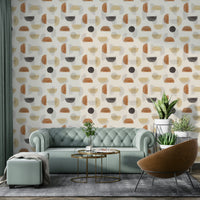Experience the beauty of simplicity with this stunning abstract wallpaper. A curated collection of muted beige, terracotta, and grey semicircles and circles creates a harmonious and visually appealing pattern. The subtle texture and soft color palette evoke a sense of calm and sophistication, perfect for spaces that demand a touch of understated elegance. This versatile design effortlessly complements both modern and traditional interiors, adding depth and visual interest without being overwhelming.